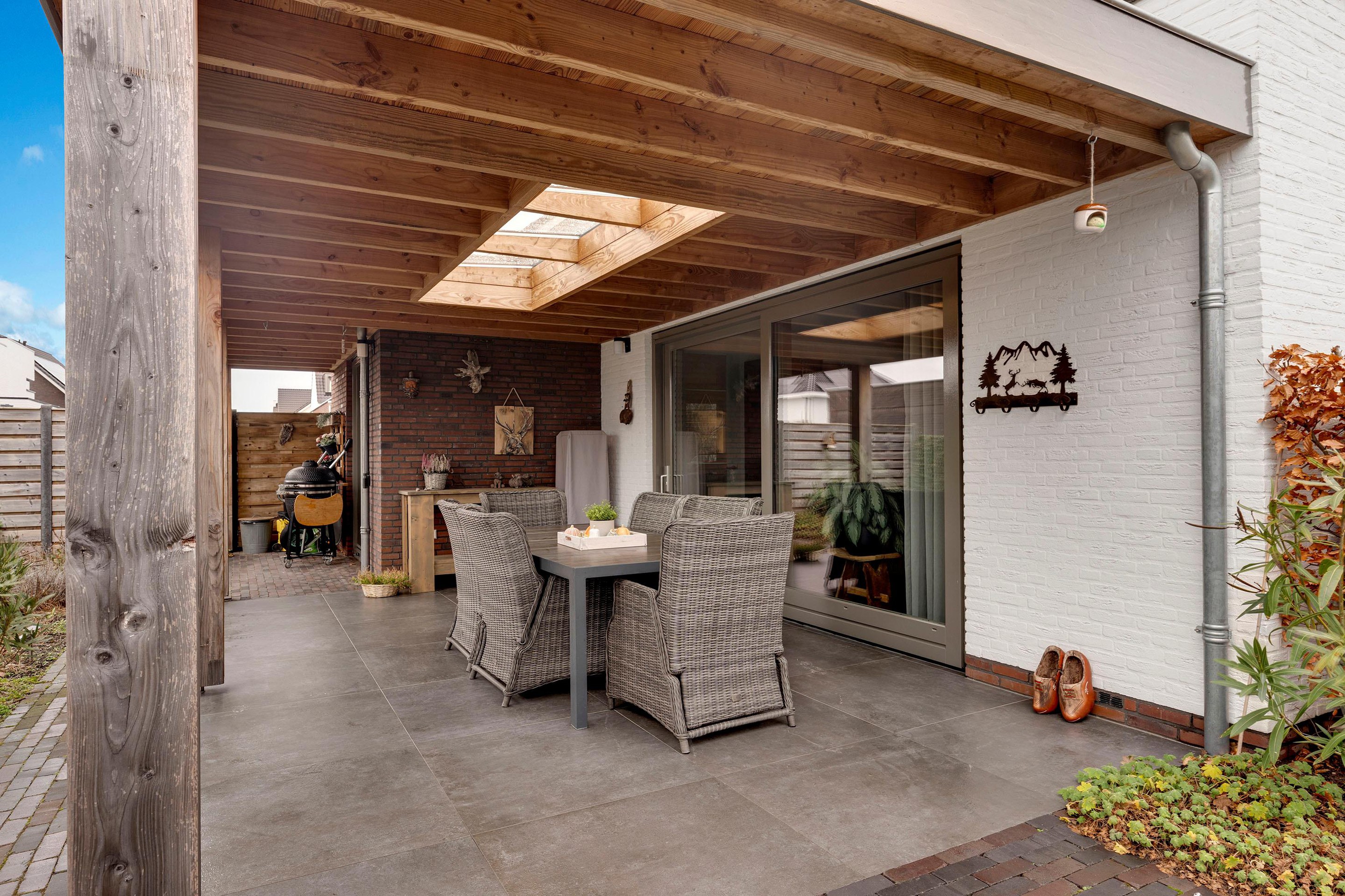 Aan de achterzijde is een gezellige grote overkapping (met lichtstraat) over de gehele breedte van het huis gerealiseerd.