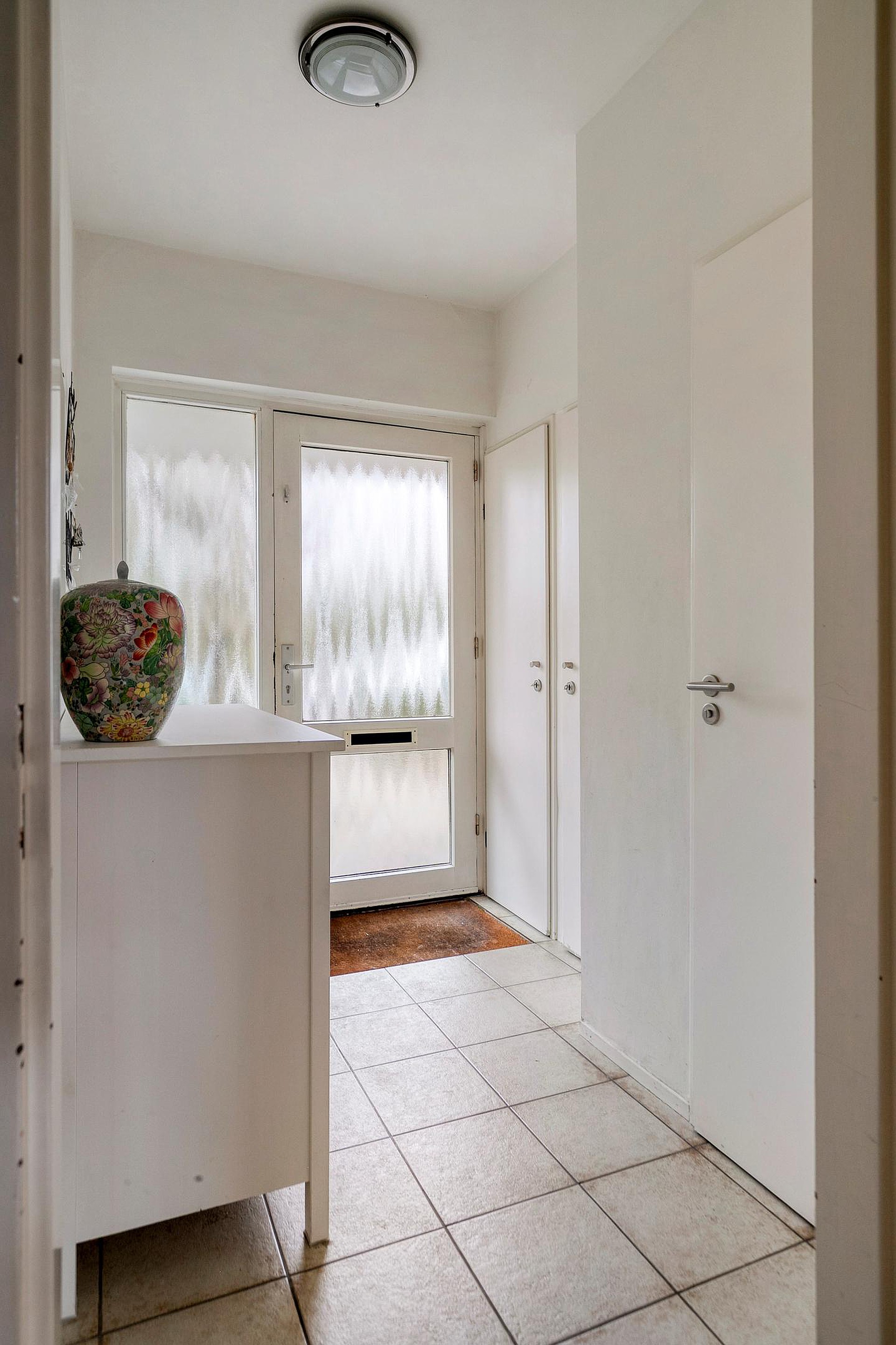 Via de verzorgde voortuin bereikt u de overdekte entree. De ontvangsthal is afgewerkt met tegelvloer en stucwerk wanden/plafond. Hier bevinden zich de meterkast, een praktische garderobekast en de volledig betegelde toiletruimte. Deze is voorzien van een vrijdragend toilet, fonteintje en inbouwspot. Vanuit de hal toegang tot de woonkamer.