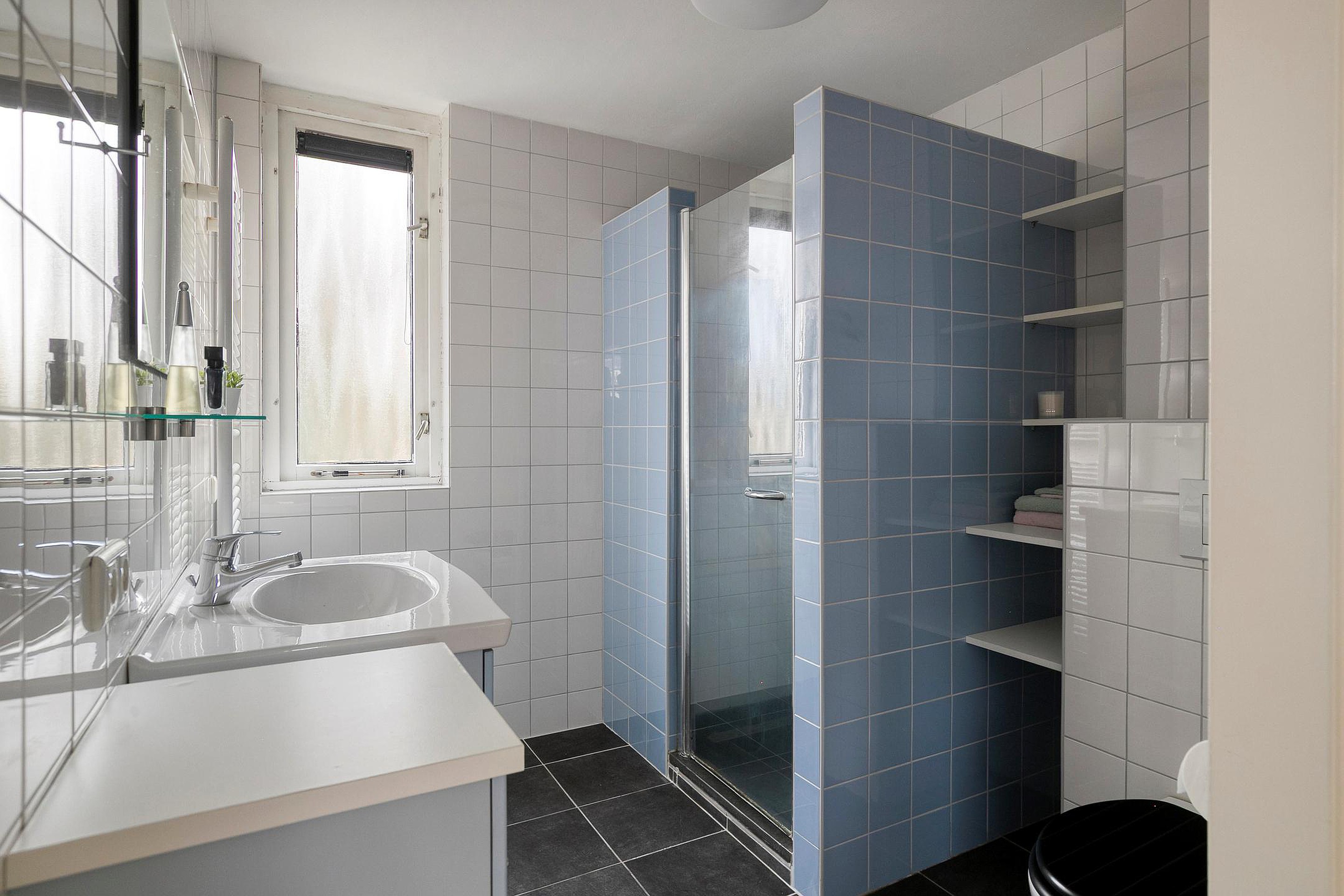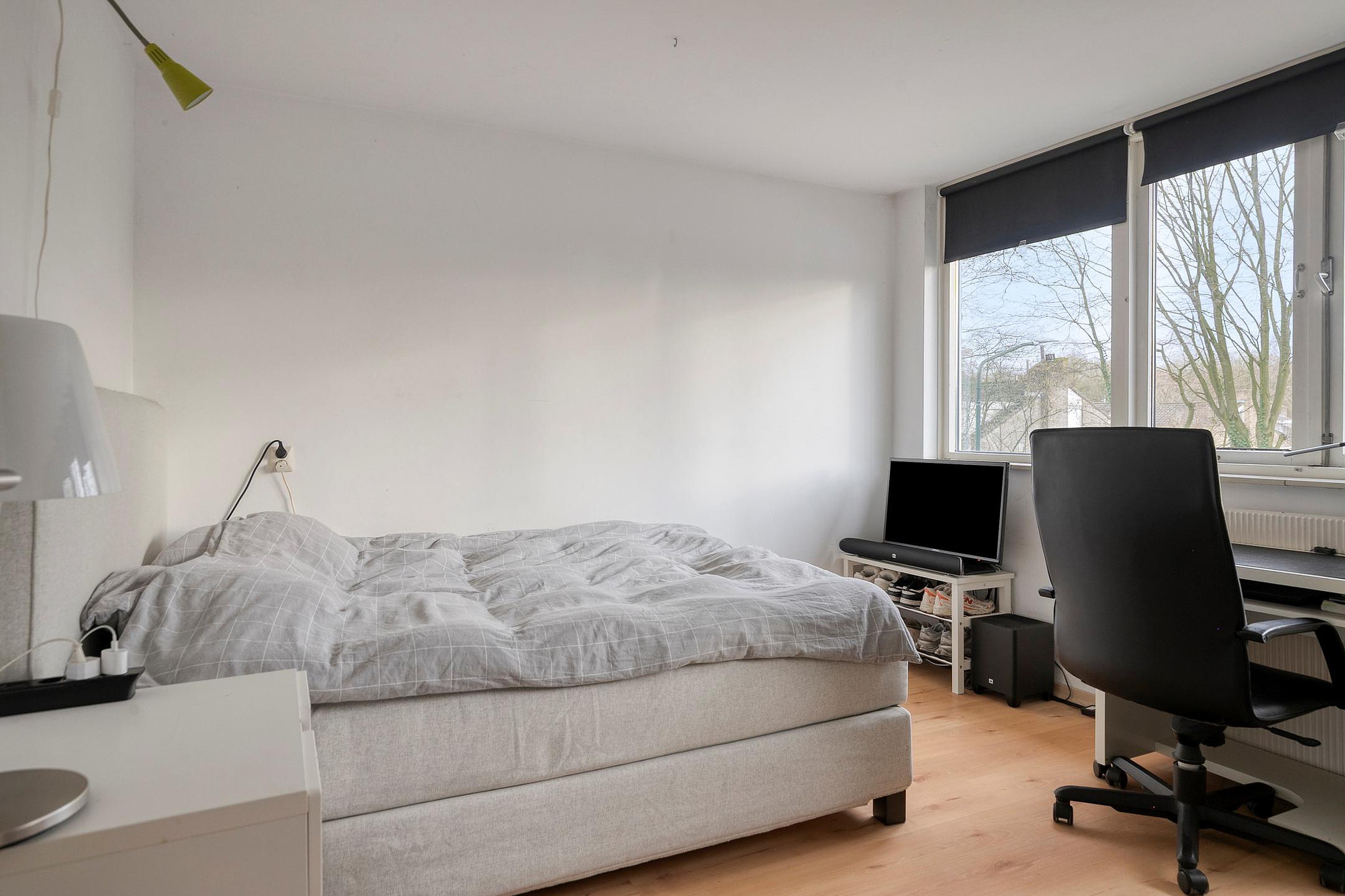 De twee slaapkamers aan de achterzijde zijn eveneens voorzien van een lamelparket, stucwerk wanden/plafonds en grote raampartijen met zicht op de tuin. De slaapkamer aan de voorzijde is afgewerkt met een laminaatvloer, stucwerk wanden/plafond, vaste wastafel en tevens een grote raampartij met vrij uitzicht. De badkamer is volledig betegeld en uitgerust met een ruime afsluitbare inloopdouche, badmeubel met vaste wastafel, een vrijdragend toilet en handdoekenradiator. Dankzij het aanwezige raam is er natuurlijke ventilatie en daglicht.