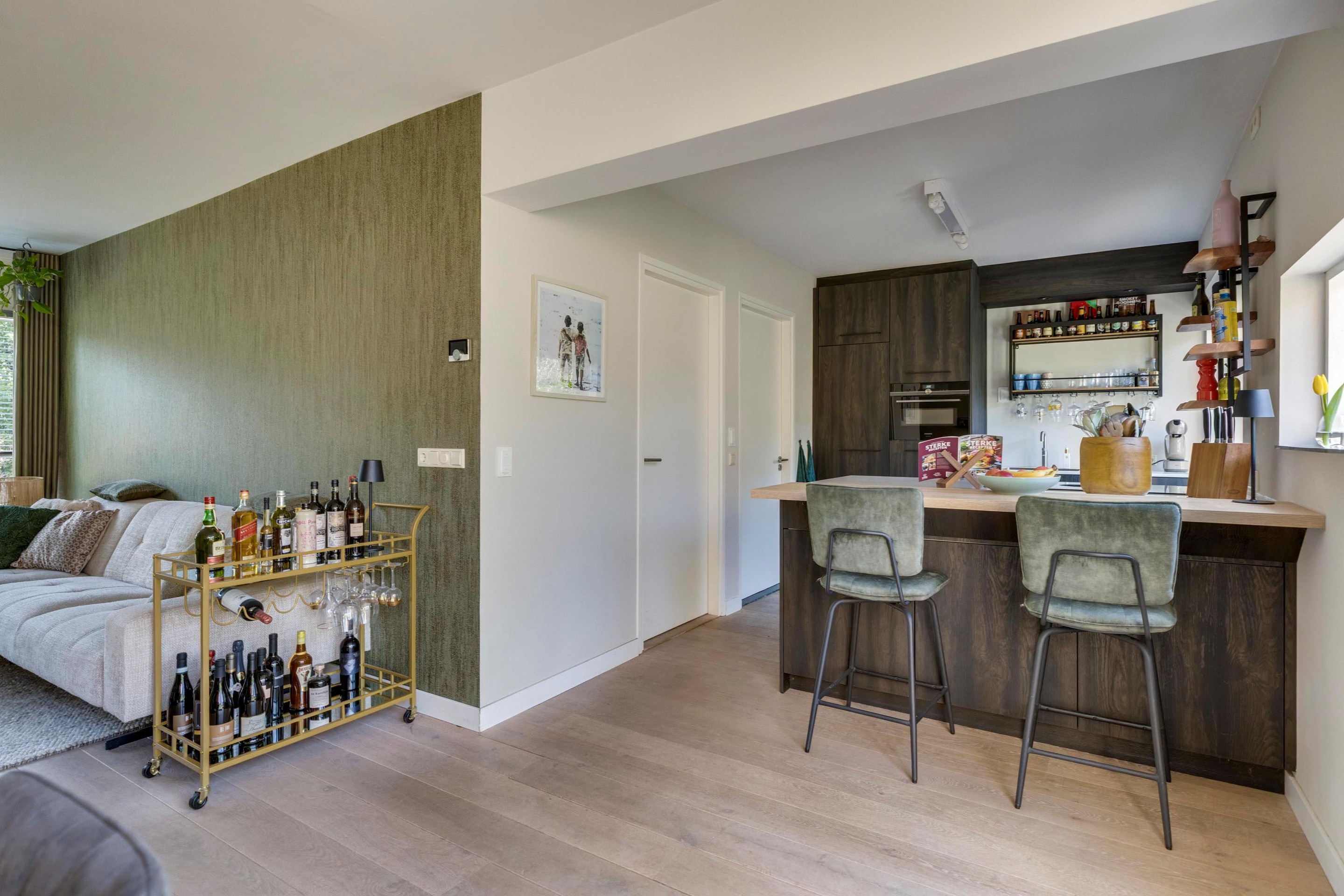 De moderne keuken (2022) is een echte blikvanger en van alle gemakken voorzien. Het kookeiland met eetbar biedt niet alleen een fijne werk-/zitplek, maar ook verrassend veel extra opbergruimte.