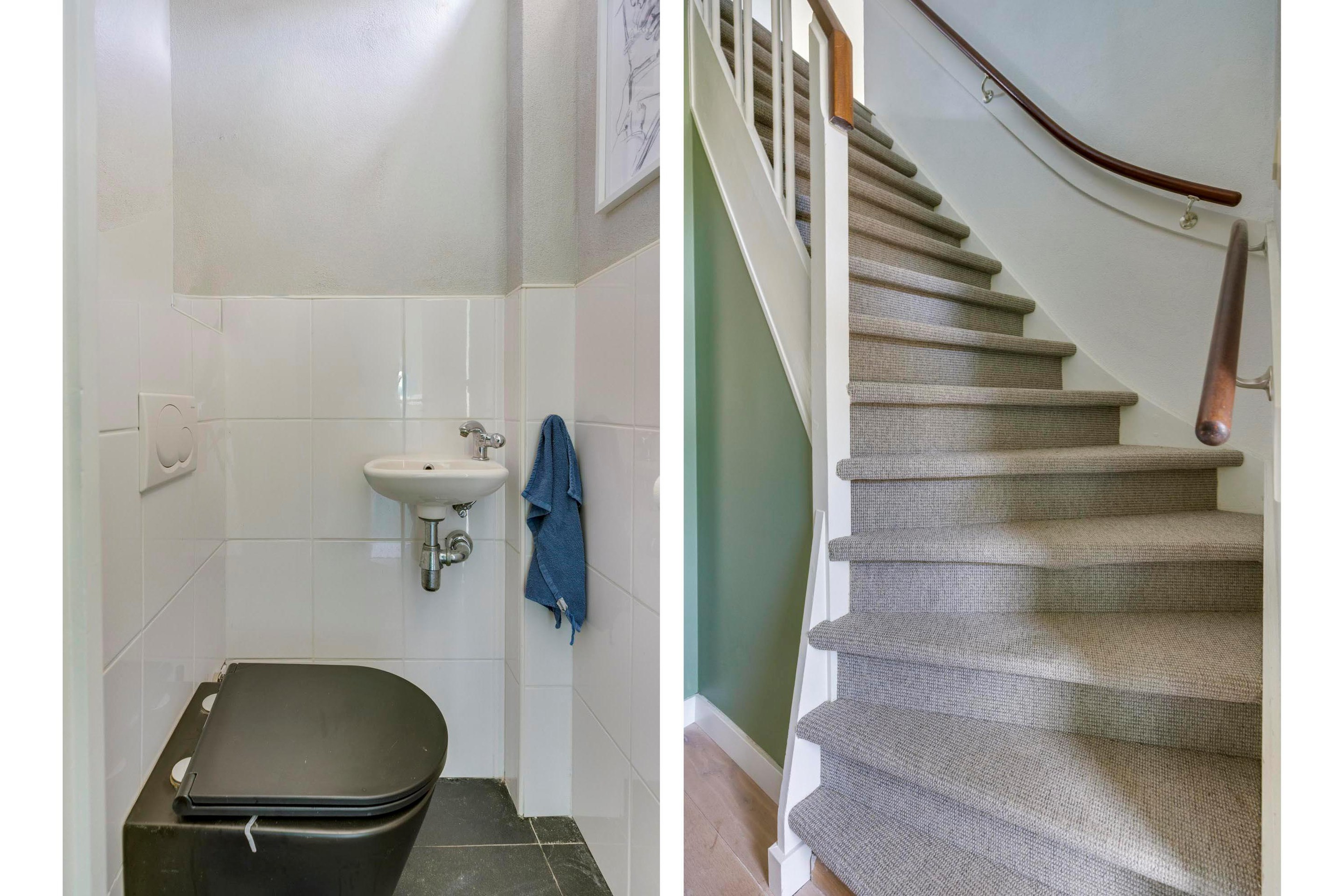Via de onderhoudsvriendelijke voortuin bereikt u de overdekte entree. De ontvangsthal is voorzien van een houten vloer, strak stucwerk en hoge plinten. Hier vindt u de trapopgang, de deels betegelde toiletruimte met vrijdragend toilet en fonteintje, garderoberuimte en een praktische verdiepte trapkast.