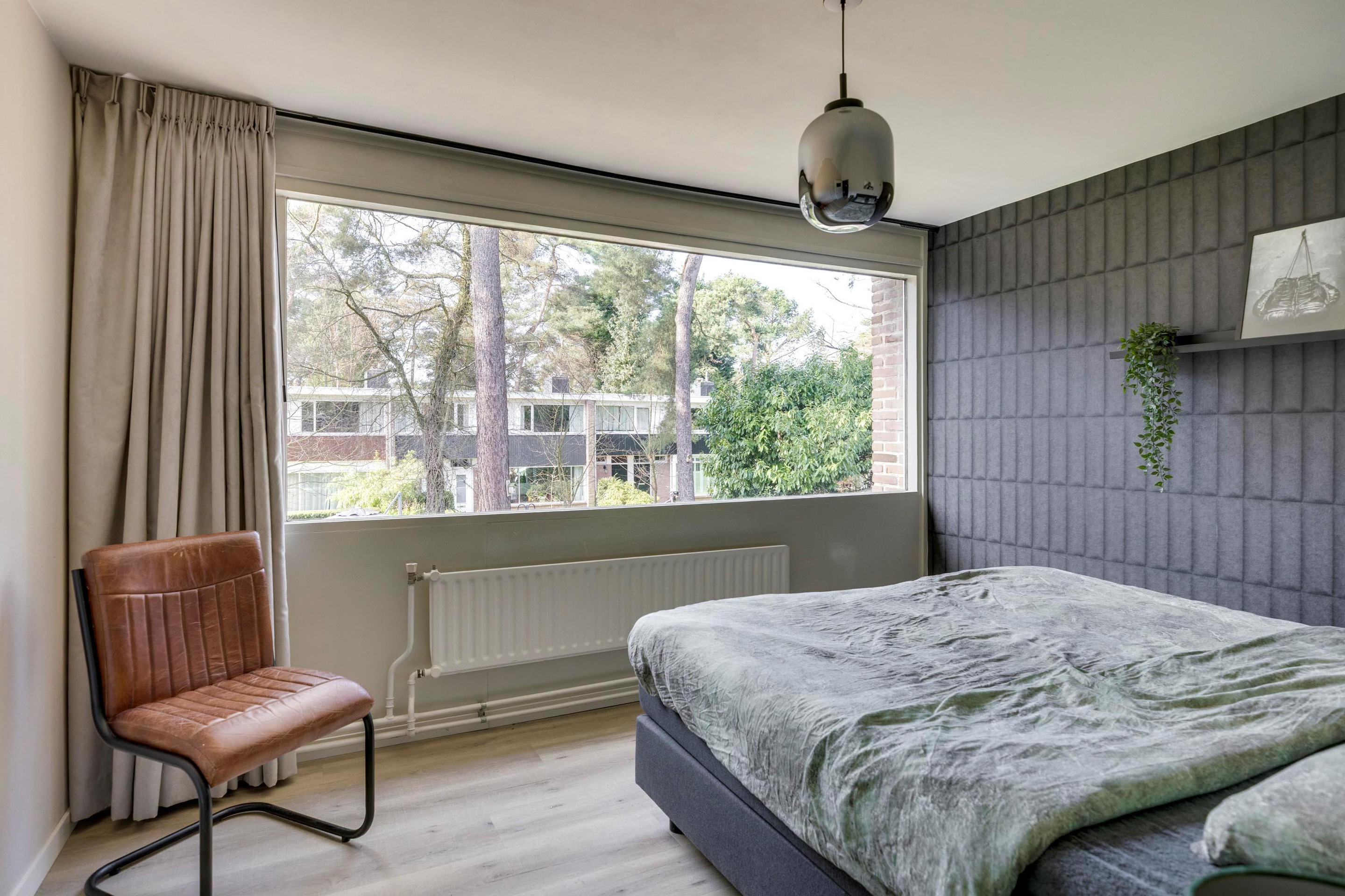 De slaapkamers zijn alle 4 keurig afgewerkt met PVC-vloer, deels behang/deels stucwerk wanden en beschikken allemaal over een praktische inbouwkast en grote raampartijen.