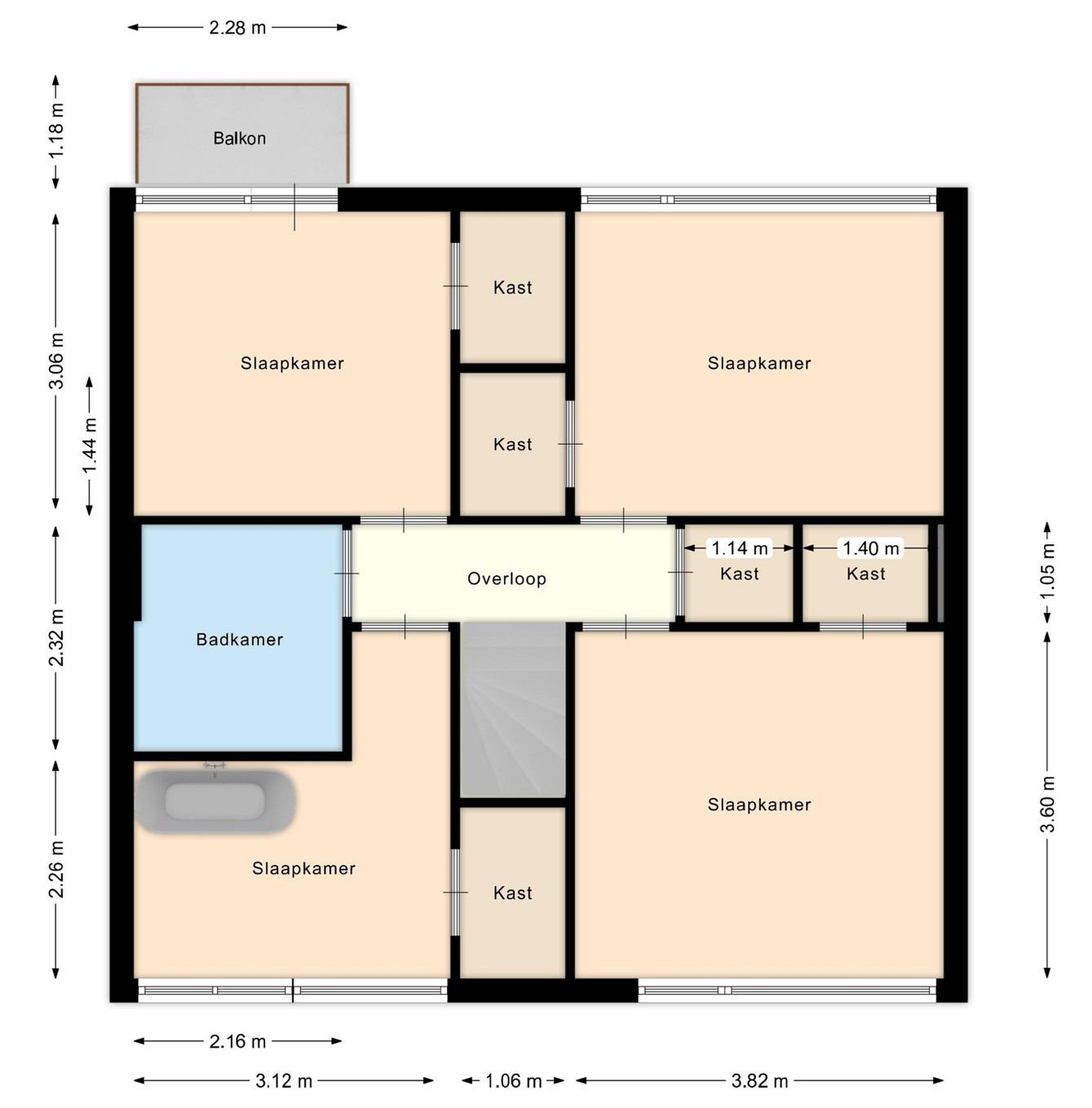 De overloop is afgewerkt met een PVC-vloer, stucwerk en beschikt over een praktische inbouwkast. Vanuit hier toegang tot de 4 slaapkamers en badkamer.