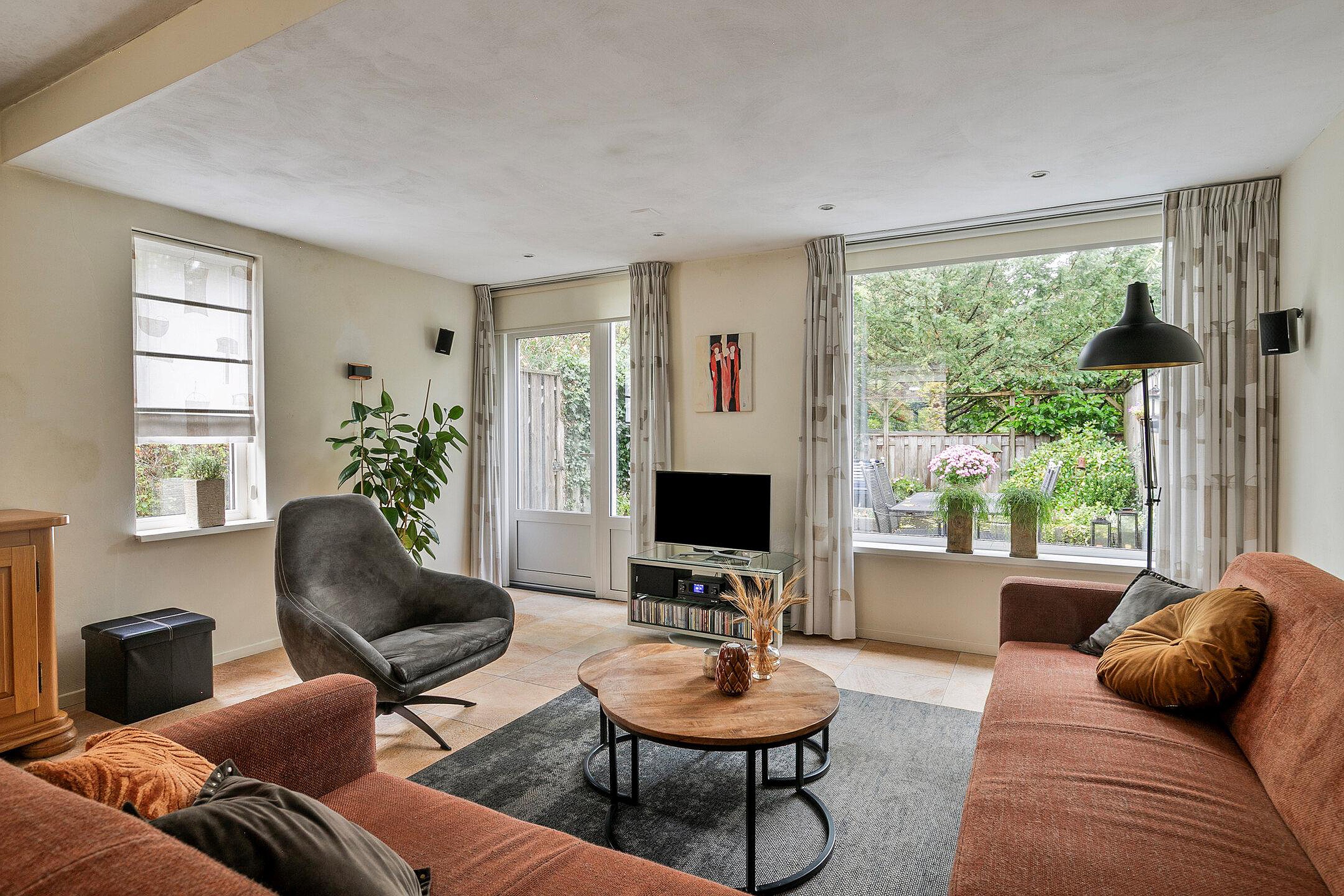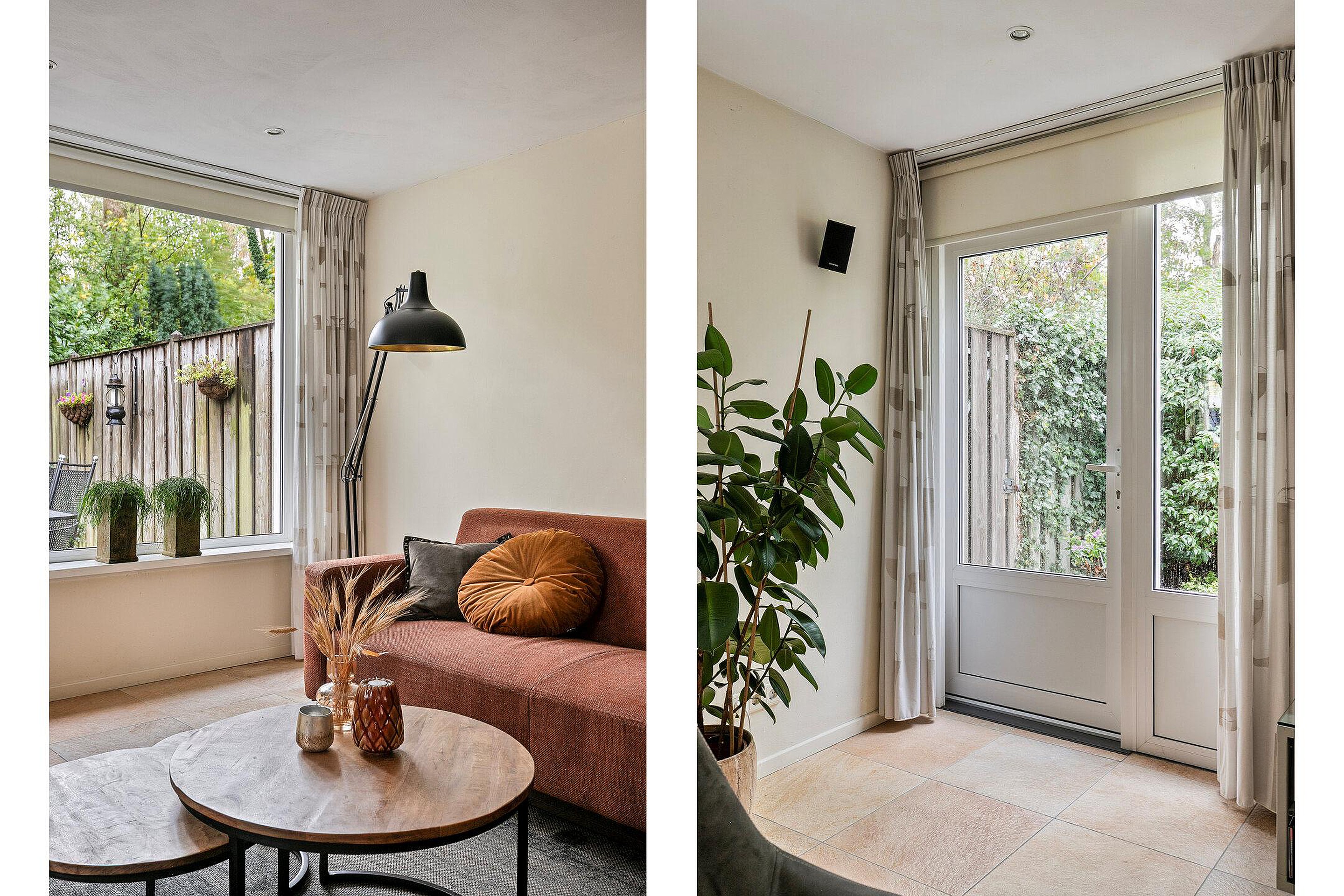 De uitbouw aan de achterzijde is voorzien van inbouwspotjes en een deur naar de tuin. Zowel aan de voor- als achterzijde van de woning zijn handbediende zonneluifels geplaatst, ideaal voor de zomerse dagen.