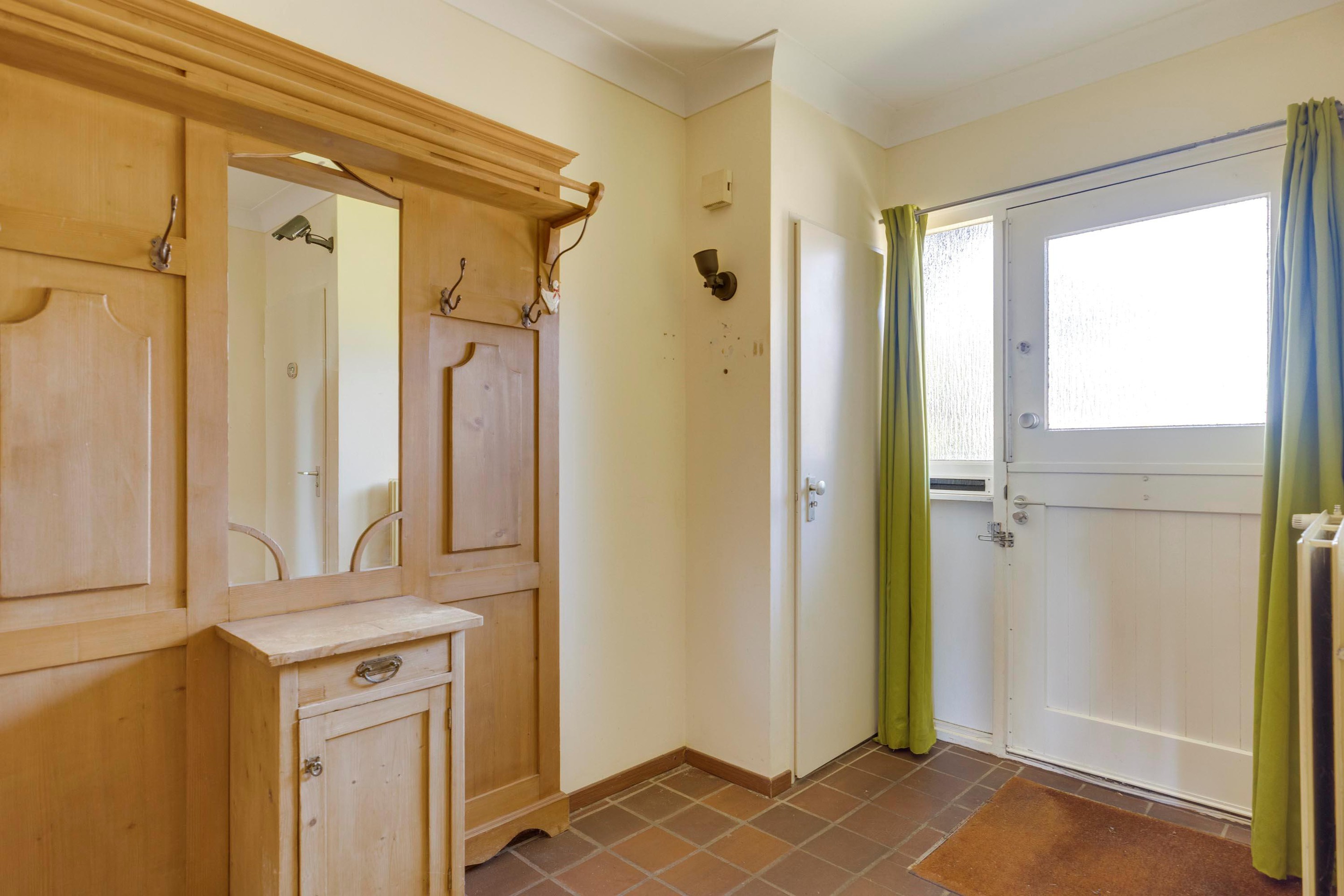 Via de voortuin bereikt u de overdekte entree. De ontvangsthal is afgewerkt met een