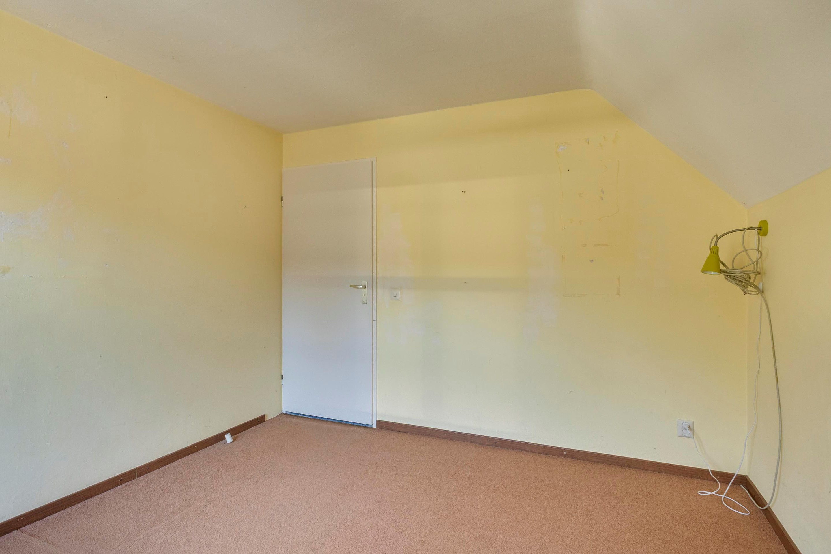 Slaapkamer 1 is afgewerkt met tapijt en voorzien van gestucte wanden en een gestuct plafond.