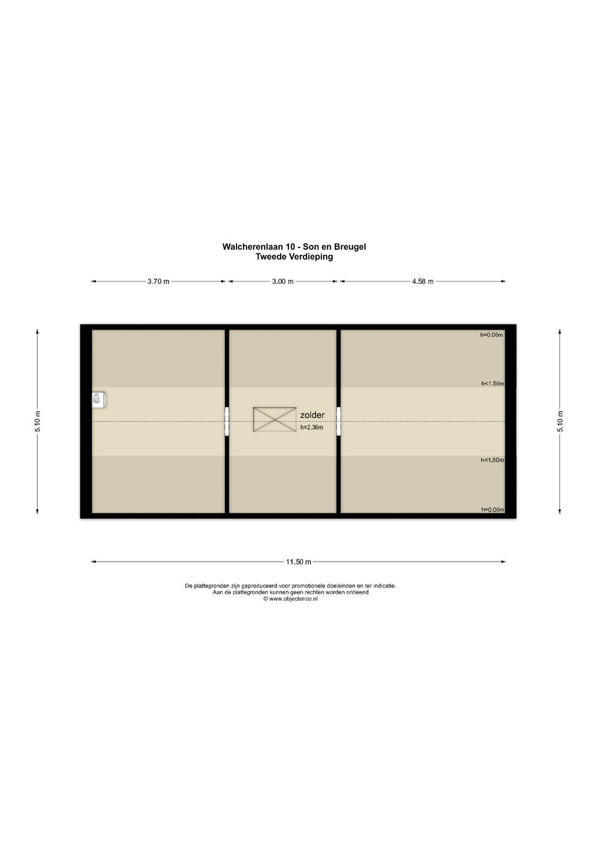 beschikt over stucwerk wanden/plafond. Vanuit hier is middels een vlizoluik toegang tot de