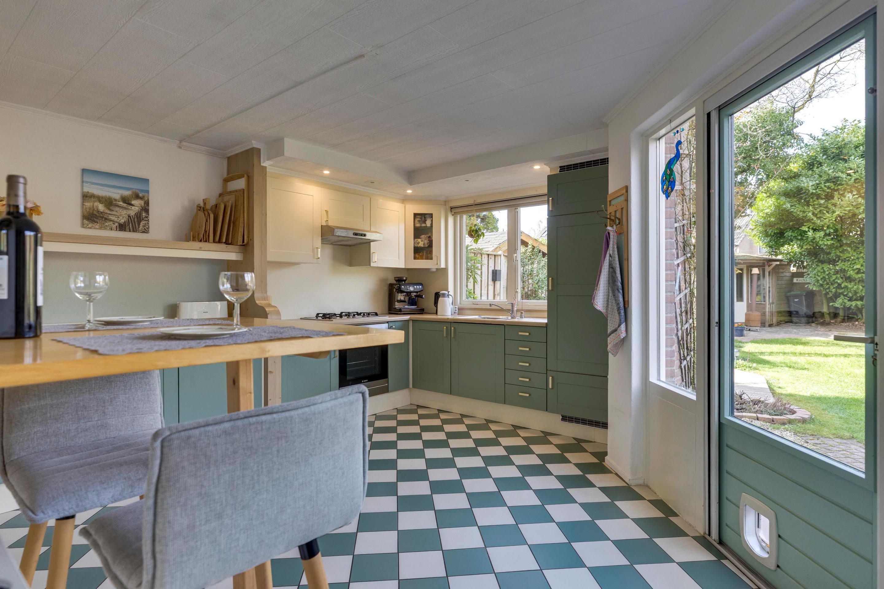 - Leefkeuken met grote raampartijen.