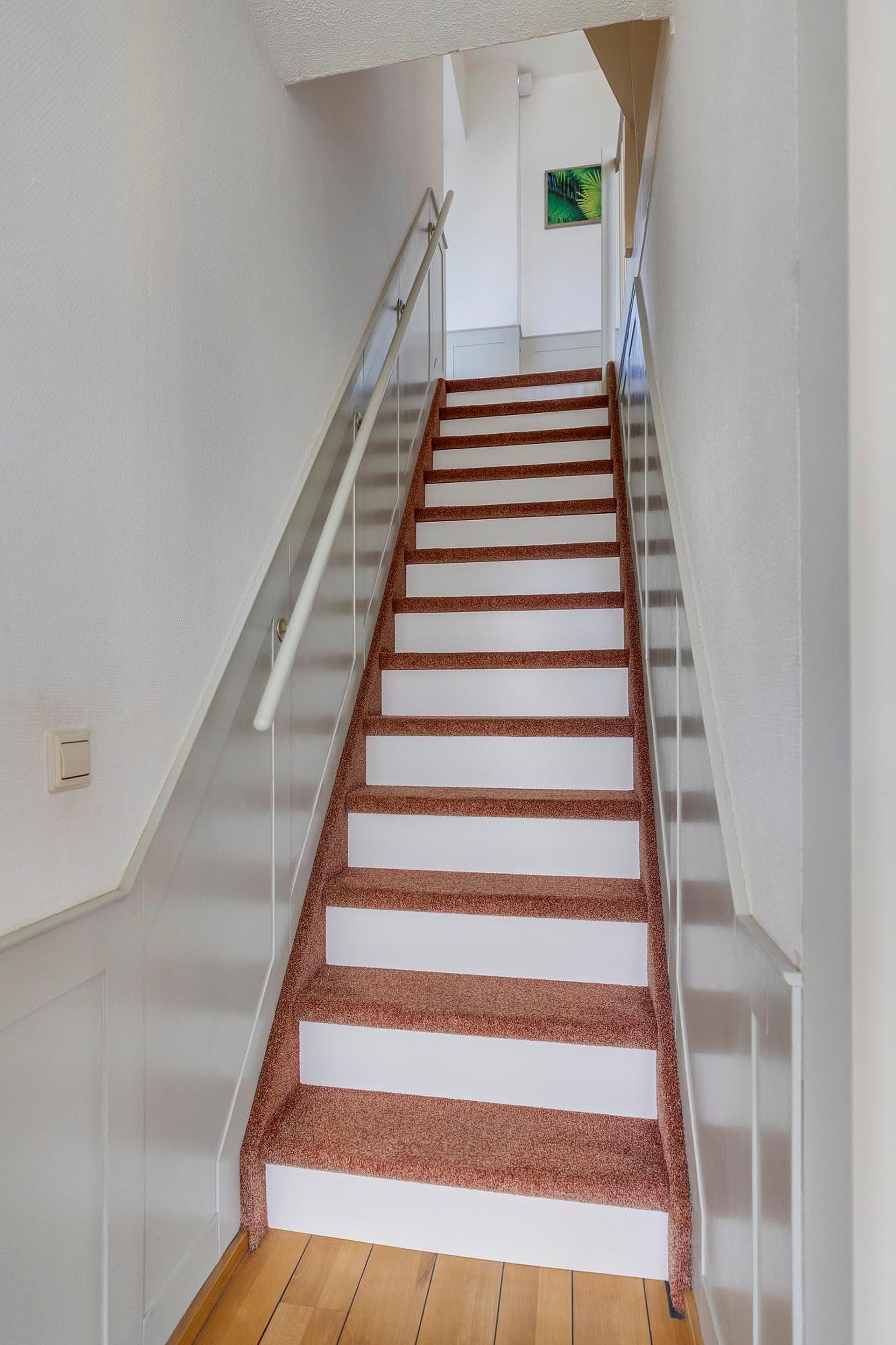 Eerste verdieping Via de trap bereikt u de overloop op de eerste verdieping. Deze is afgewerkt met een laminaatvloer en de wanden zijn deels voorzien van structuurbehang en deels stucwerk. Aan de voorzijde bevindt zich een ruime slaapkamer, voorzien van een laminaatvloer, gestucte wanden en een structuurplafond.