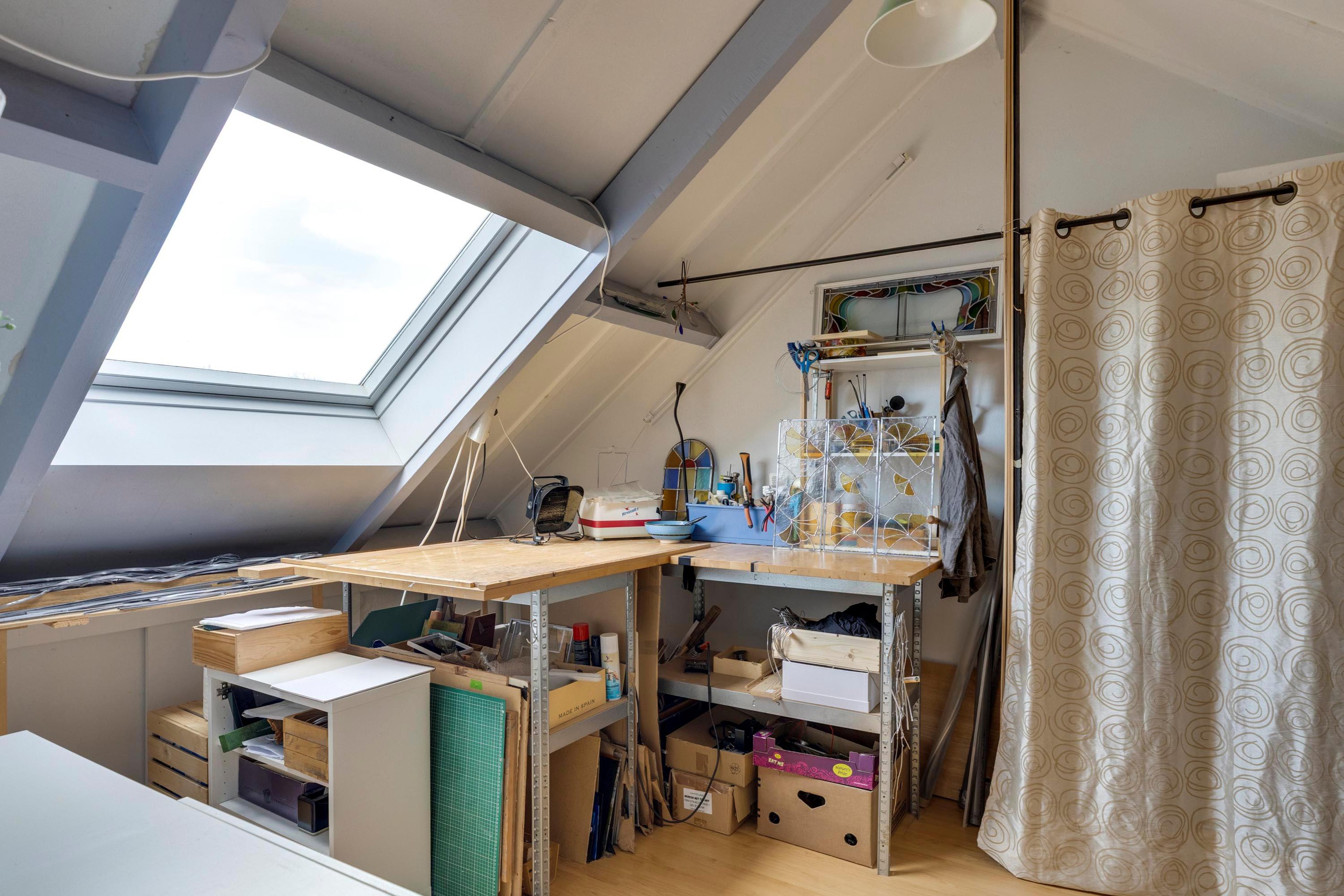 de knieschotten en zijn er extra kasten gecreëerd, waardoor de ruimte optimaal wordt benut.