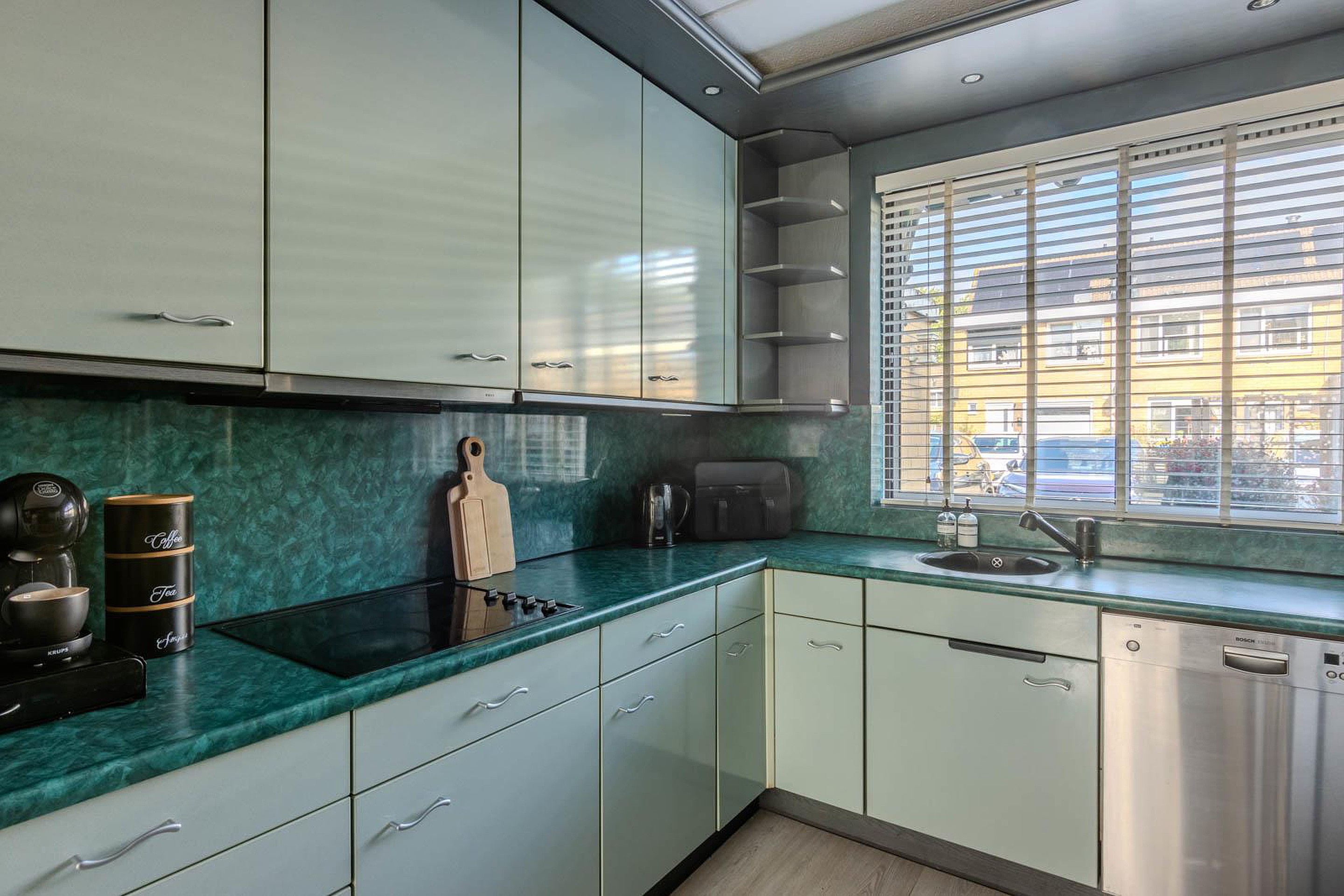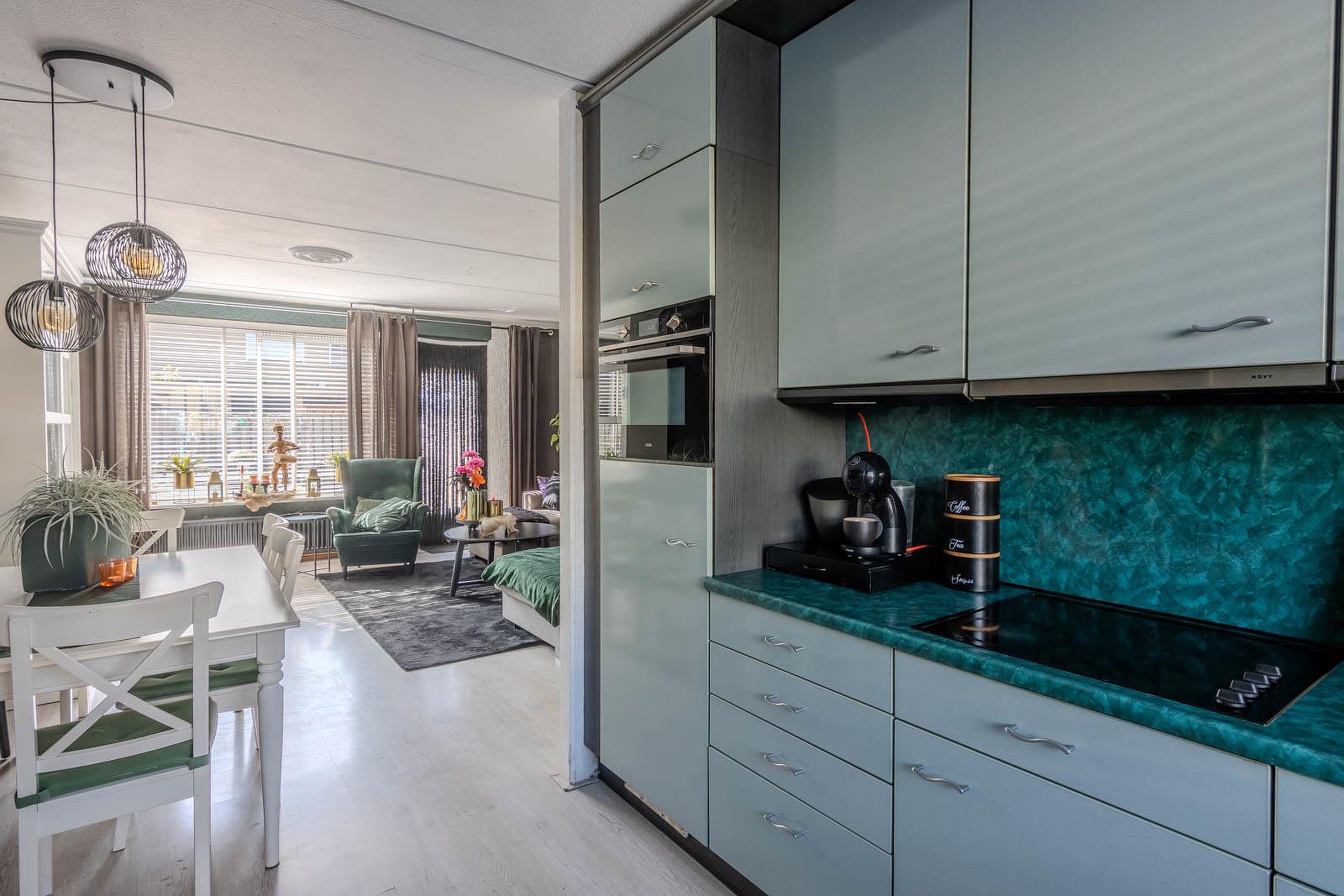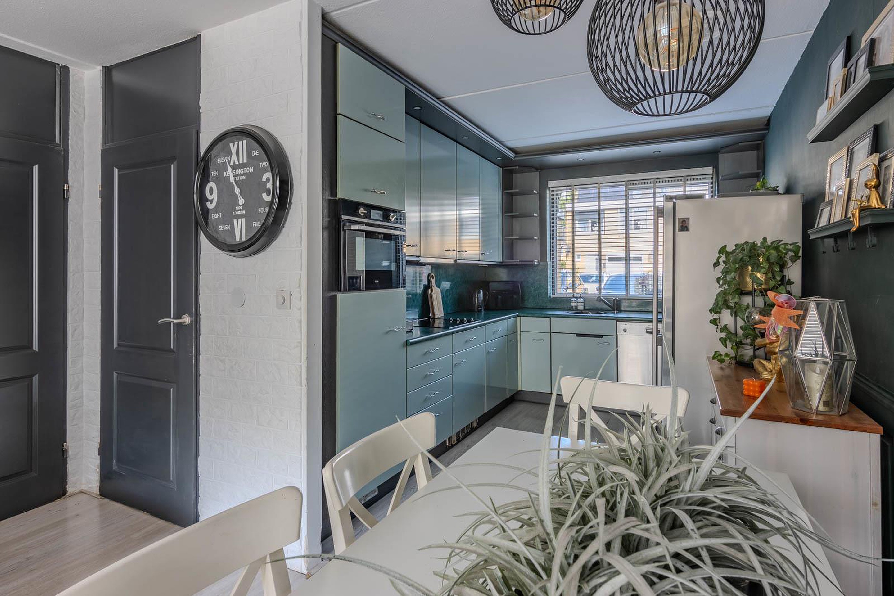 De woonkamer is licht dankzij de doorzon-indeling en staat in verbinding met de open keuken. De keuken is uitgerust met een 4-zone elektrische kookplaat, combimagnetron, grote Amerikaanse koelkast/vriezer en veel kastruimte. Vanuit de woonkamer heb je toegang tot de achtertuin op het zuidoosten, voorzien van een waterkraan, elektra, zonwering en achterom.