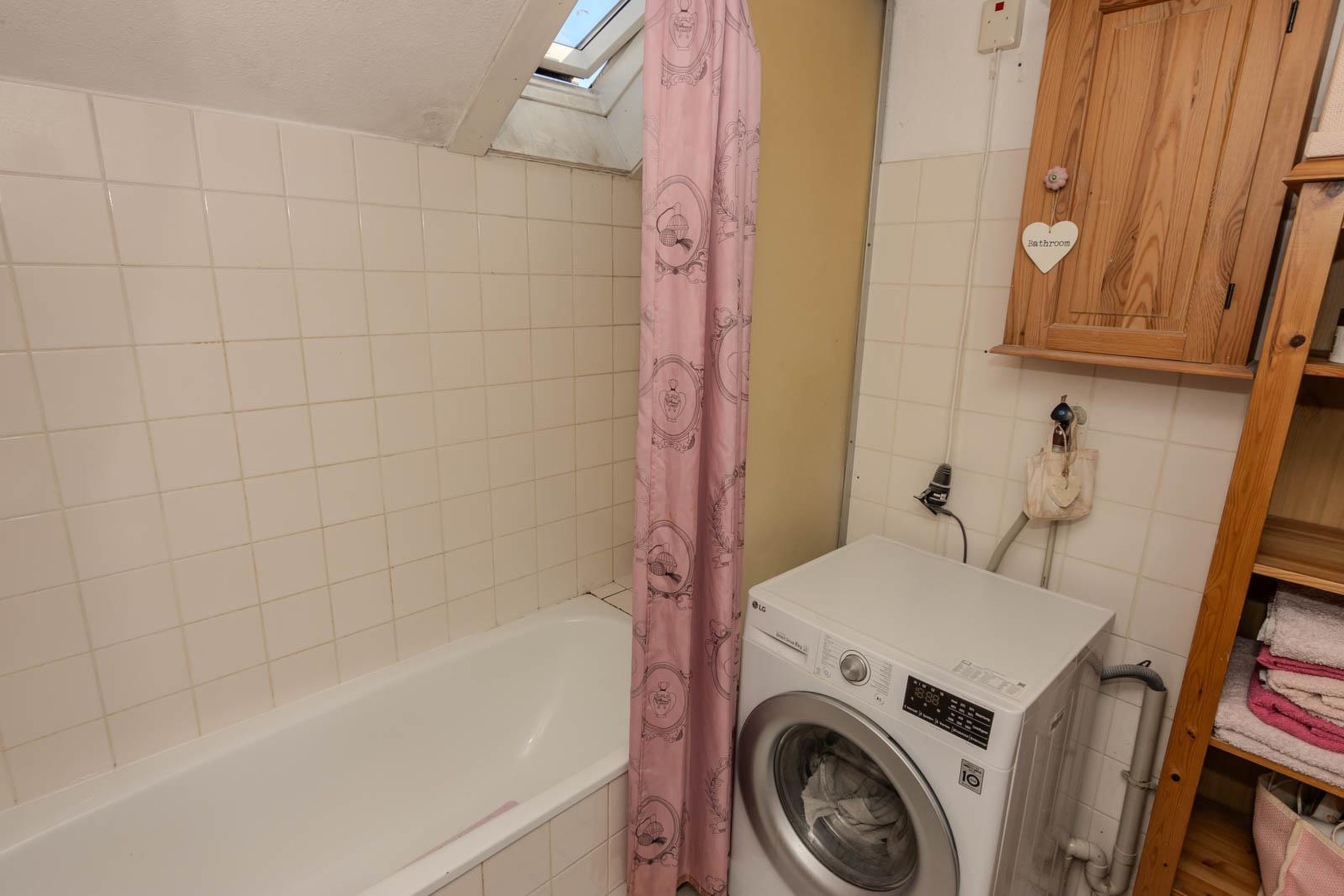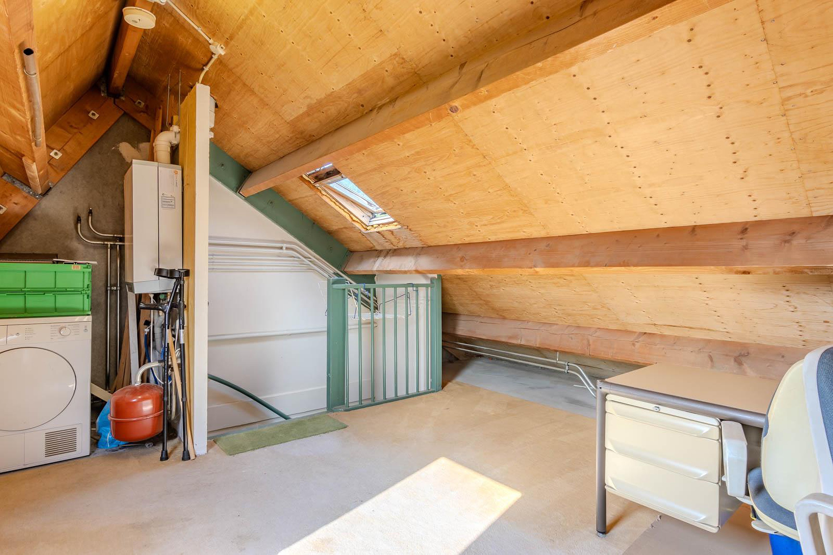 De zolder is verrassend ruim en geeft ruimte tot het creëren van een vierde slaapkamer met twee dakramen. Er is een mogelijkheid om hier de wasmachineaansluiting te plaatsen, plek voor een droger en de cv-installatie (Intergas, 2015, eigendom).