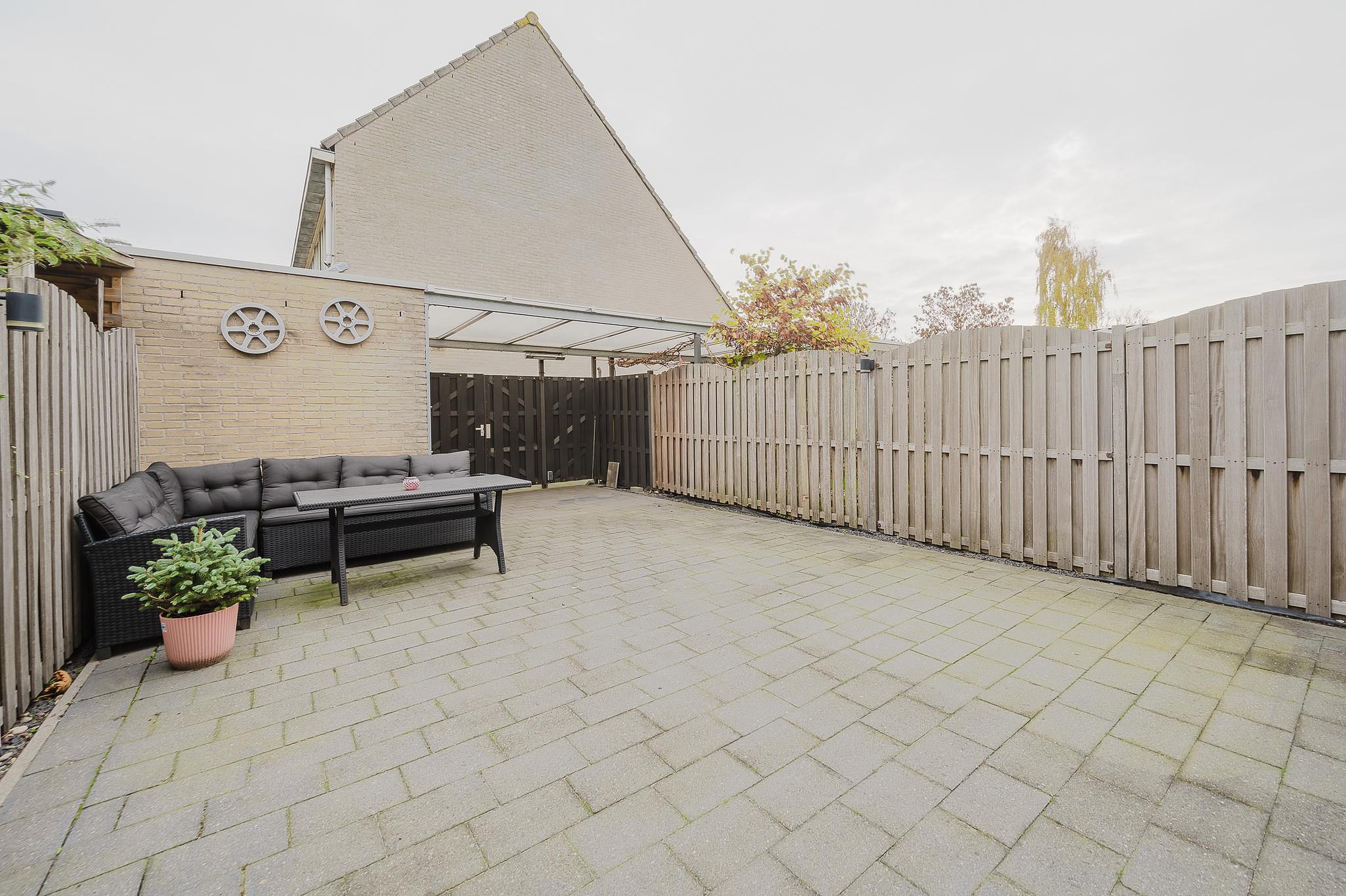 De verzorgde achtertuin is gelegen op het oosten en is mooi aangelegd. Achterin de tuin is er een vrijstaande berging en een overkapping met verlichting en een kachel.