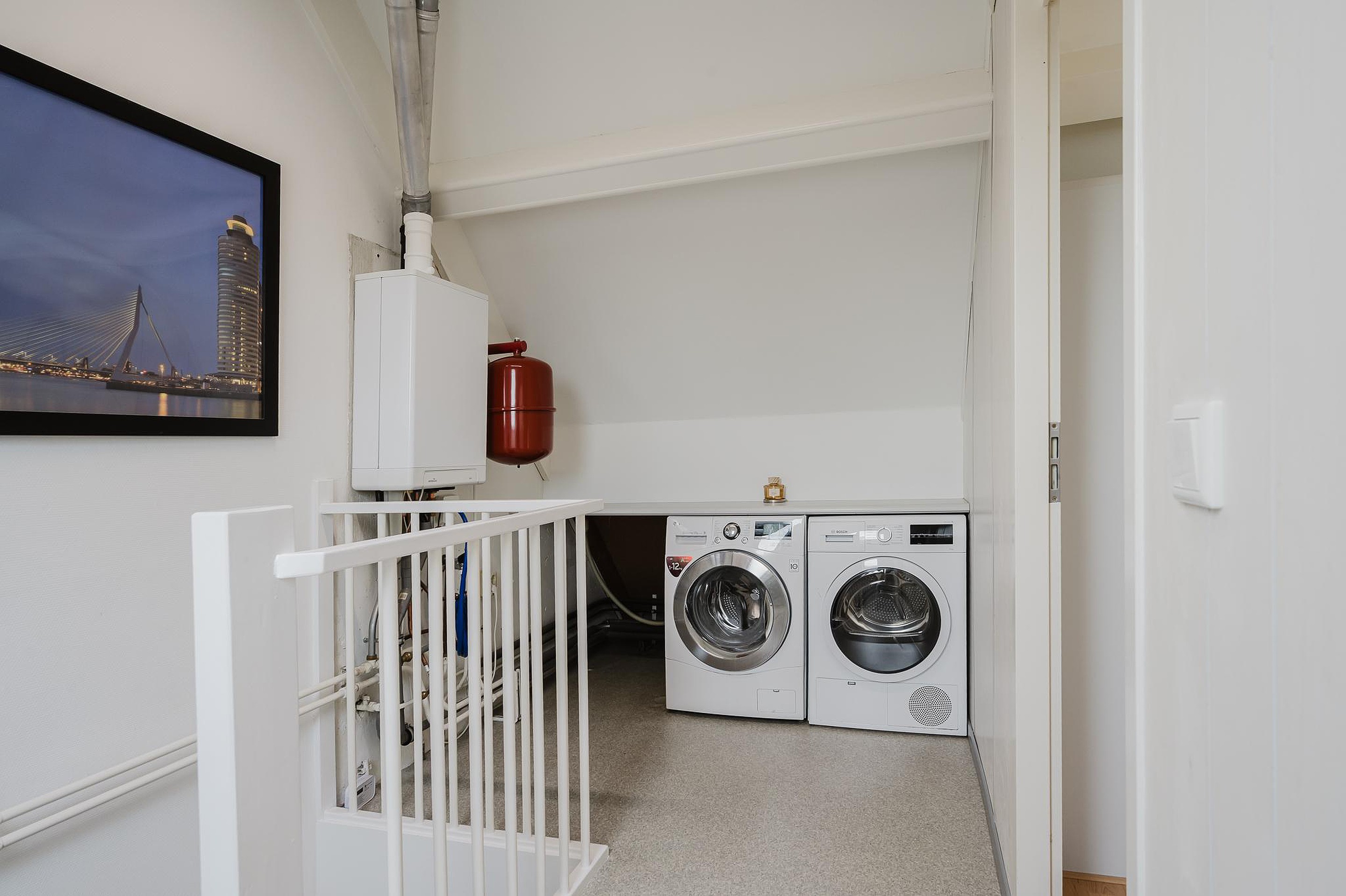 Op de voorzolder zijn de aansluiting voor wasmachine- en droger, de cv-installatie en de mechanische ventilatie gesitueerd. De bergschotten zorgen op zowel de voorzolder als de zolderkamer voor extra opbergruimte en de tweede verdieping is volledig voorzien van een laminaatvloer.