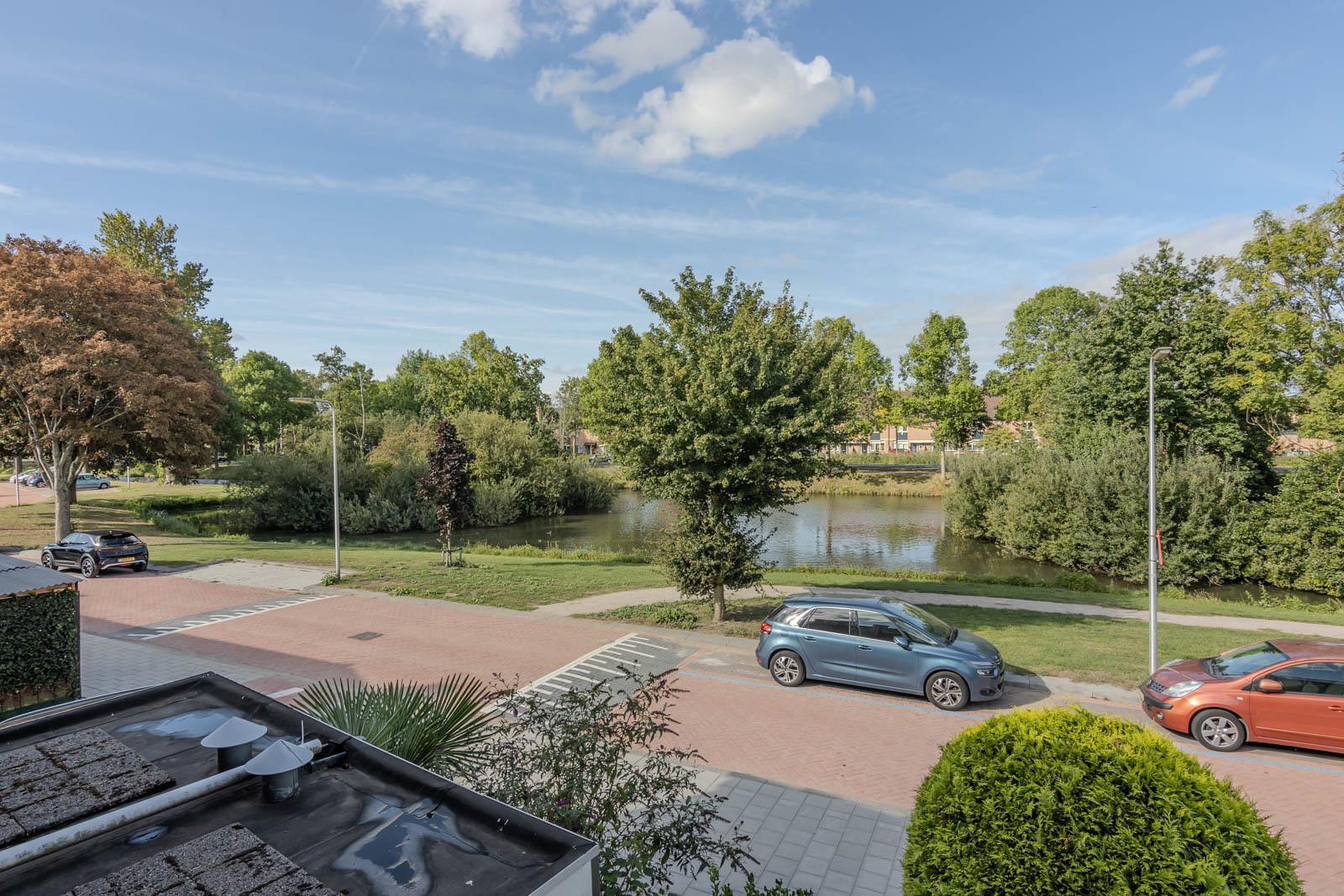 Overloop met toegang tot drie slaapkamers en de badkamer. De slaapkamer aan de voorzijde biedt opnieuw dat prachtige, vrije uitzicht over de vijverpartij.Elke ochtend wakker worden met een glimlach!