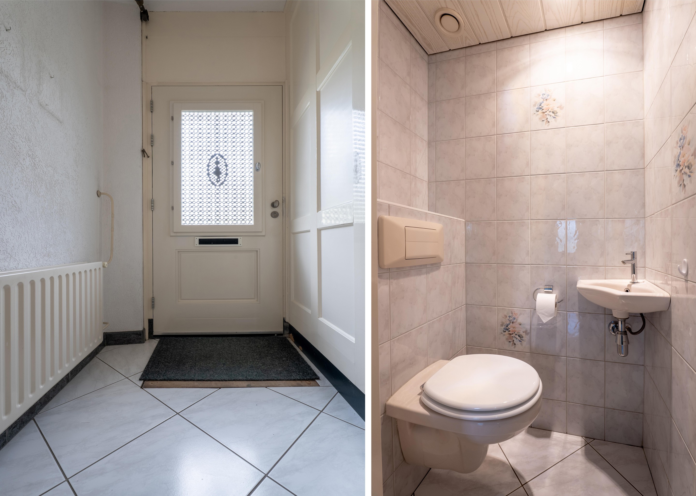 De entree biedt toegang tot de hal met meterkast, toiletruimte, trapkast en trapopgang.