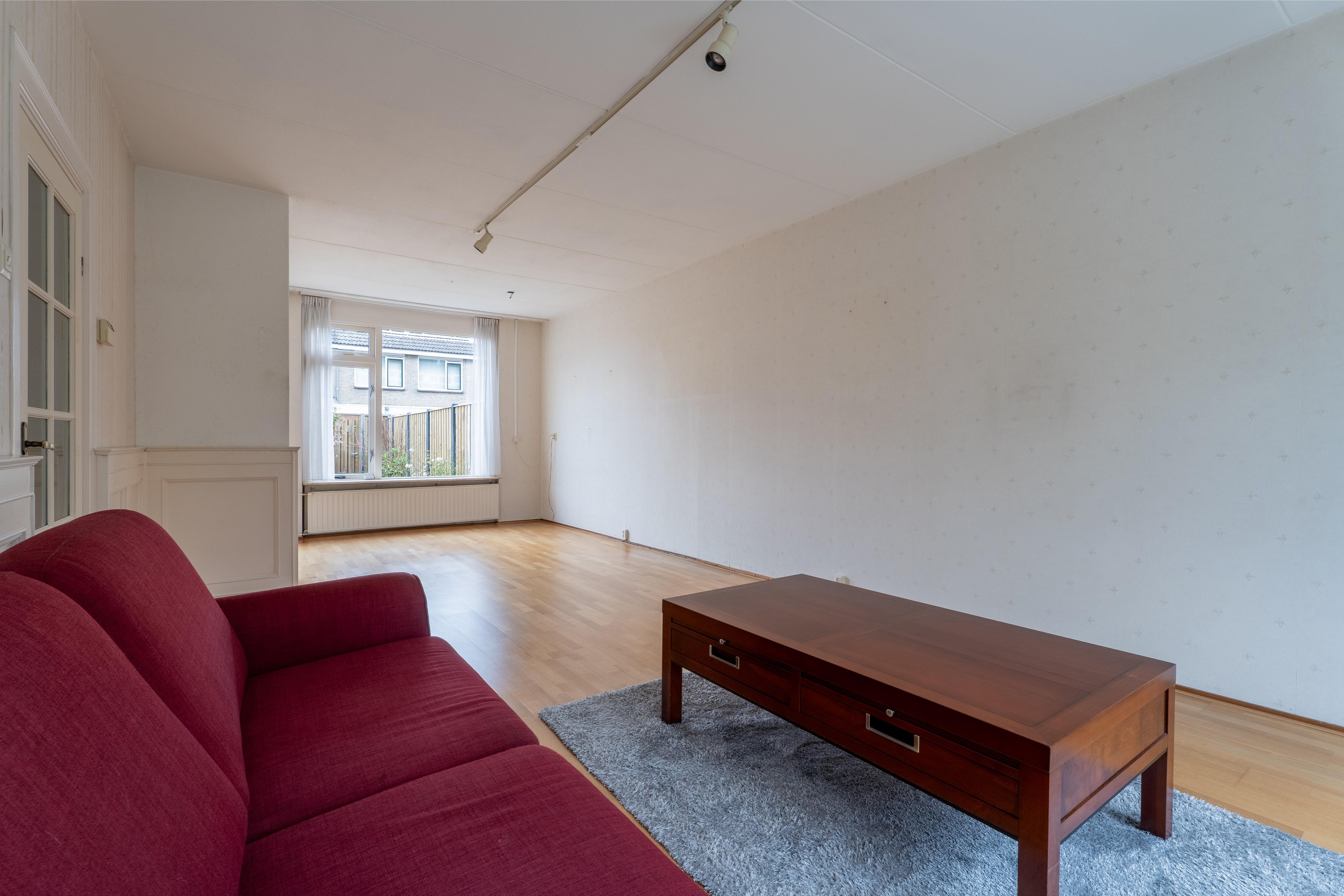 Via de hal bereik je de ruime en lichte doorzonwoonkamer. De woonkamer is voorzien van een laminaatvloer. De erker aan de voorzijde is voorzien van een elektrische screen.