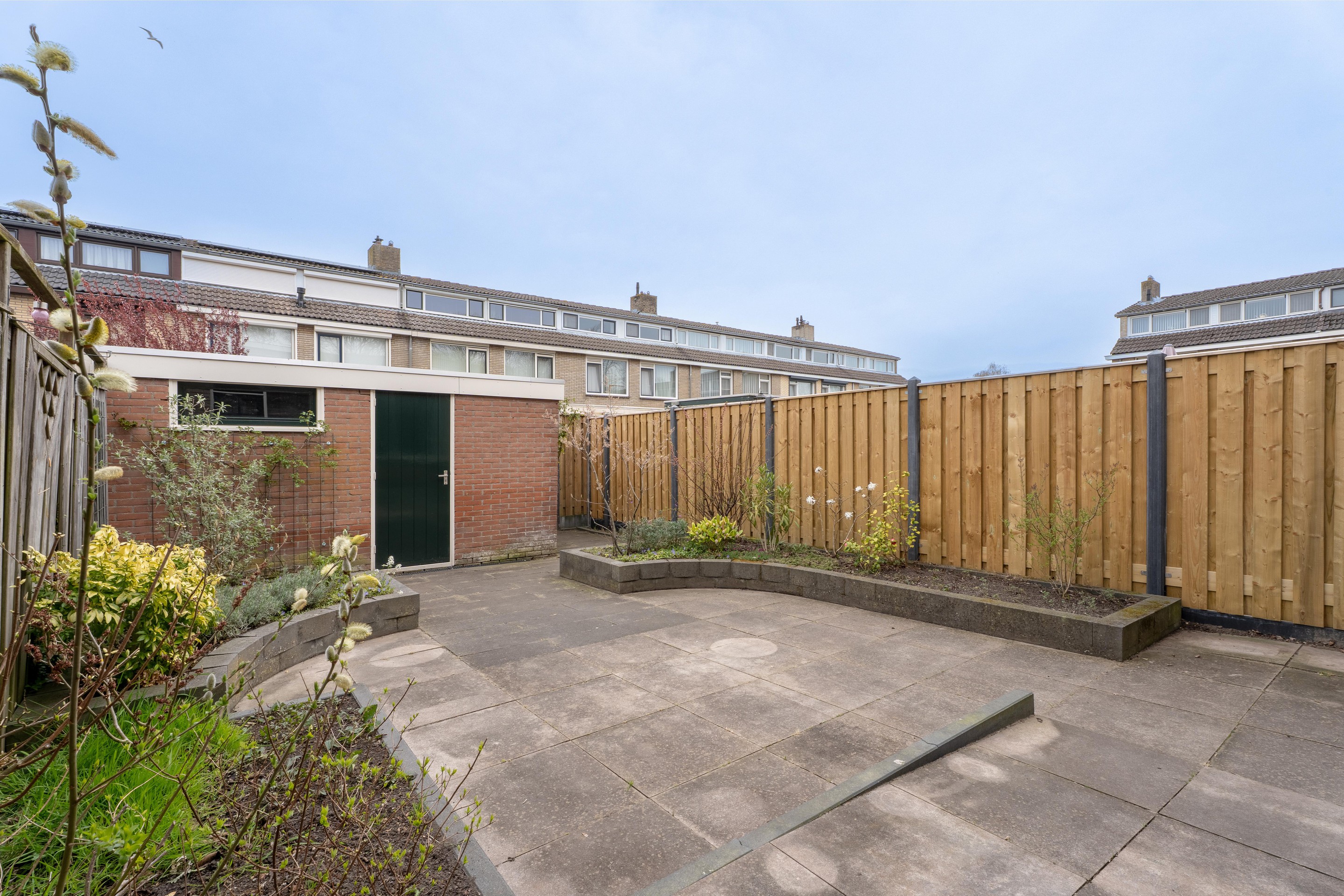 Via de tuindeur in de keuken bereik je de achtertuin, gelegen op het oosten. Hier geniet je van de ochtendzon. De tuin is voorzien van een vrijstaande stenen berging, een achterom en een elektrisch zonnescherm.