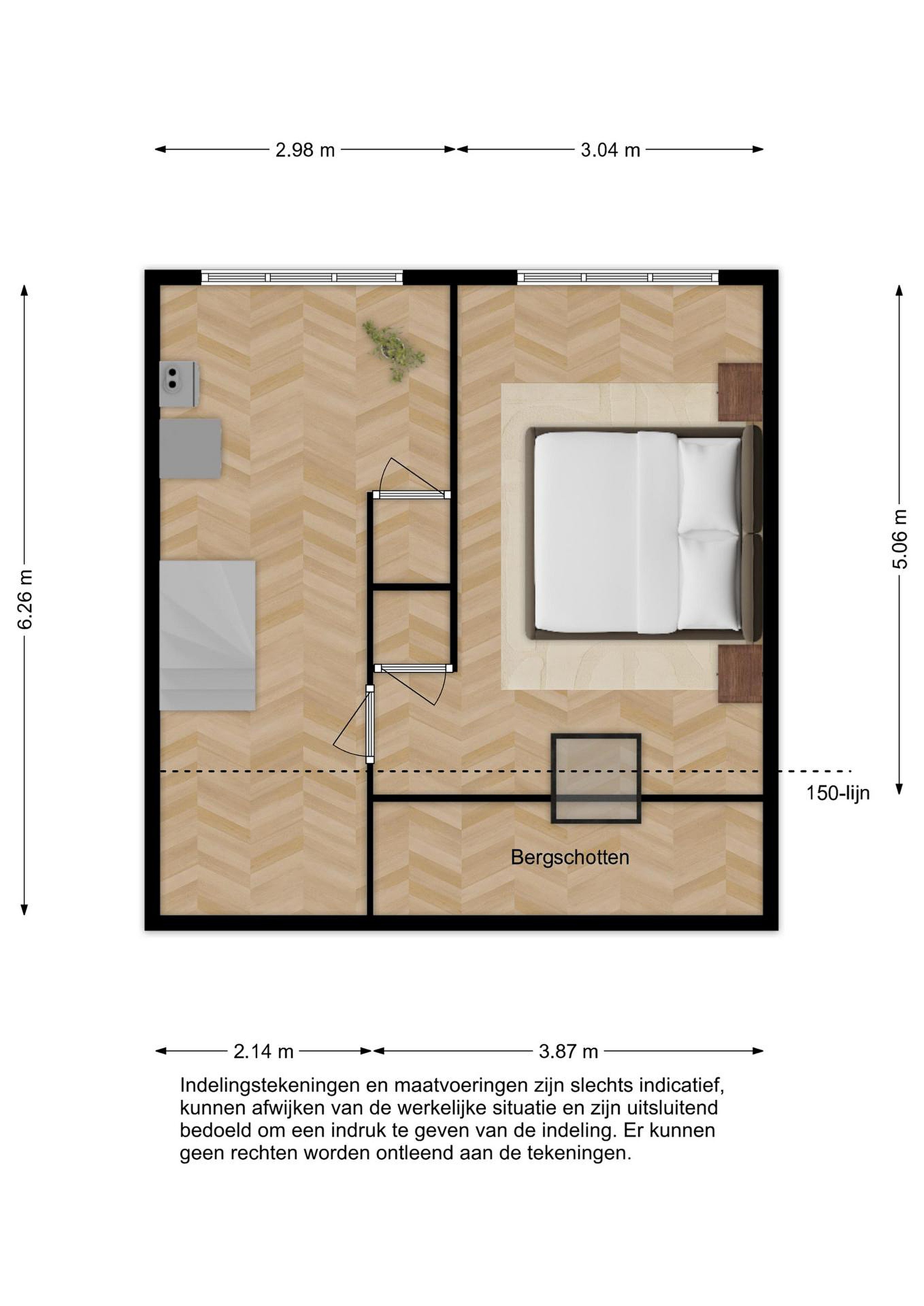 - Zolderkamer is circa: 304 cm x 507 cm (tot 150-lijn)