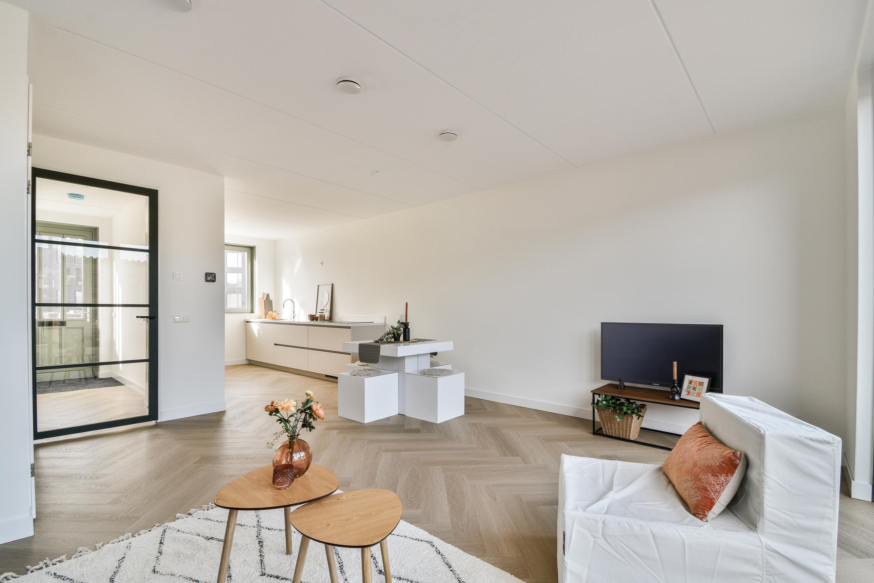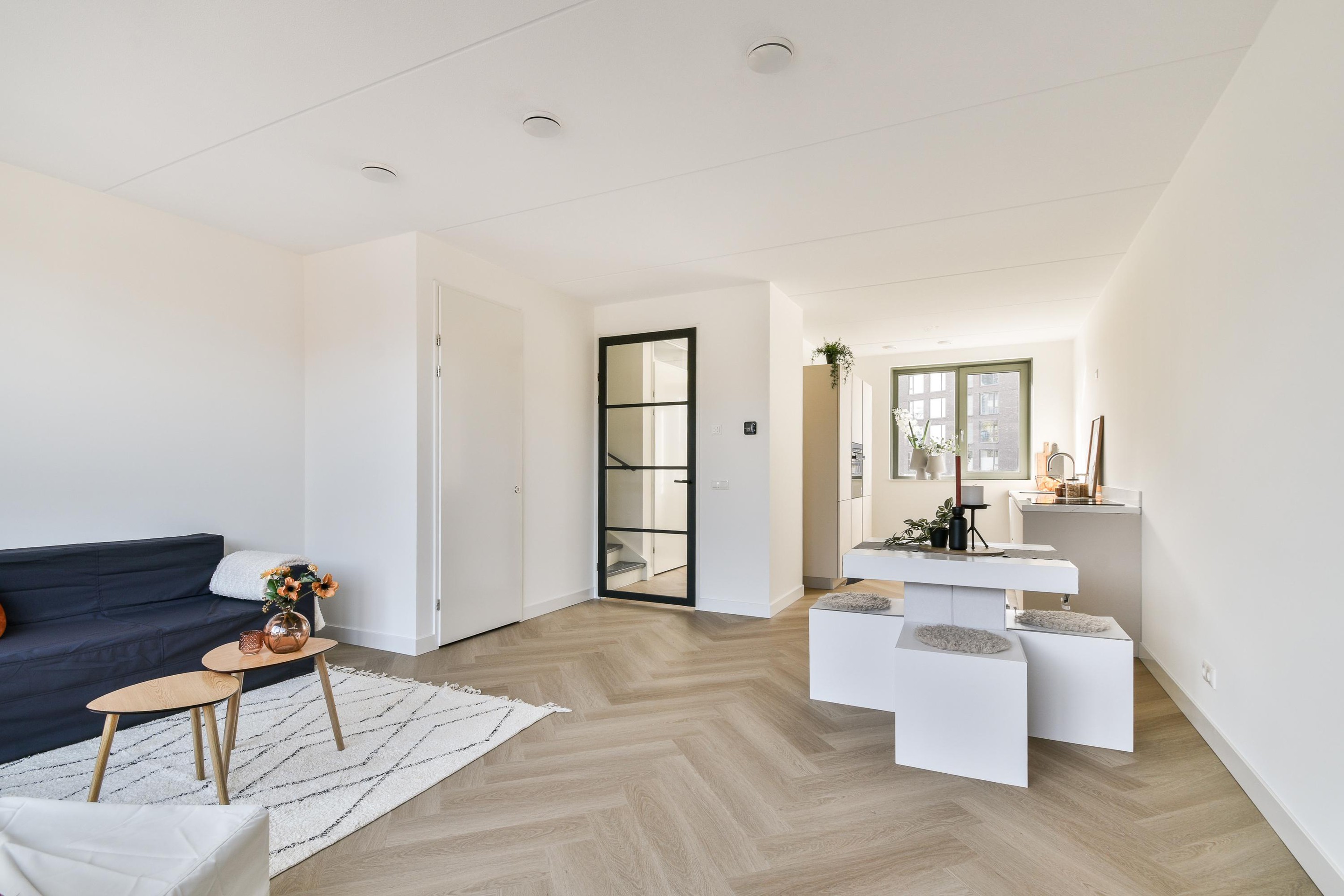 De ruime, tuingerichte woonkamer beschikt over grote raampartijen die zorgen voor een overvloed aan daglicht. Dankzij de rechte indeling is er volop ruimte voor zowel een gezellige zithoek als een royale eettafel. De strakke afwerking en nieuwe materialen geven de woonkamer een frisse en eigentijdse uitstraling.