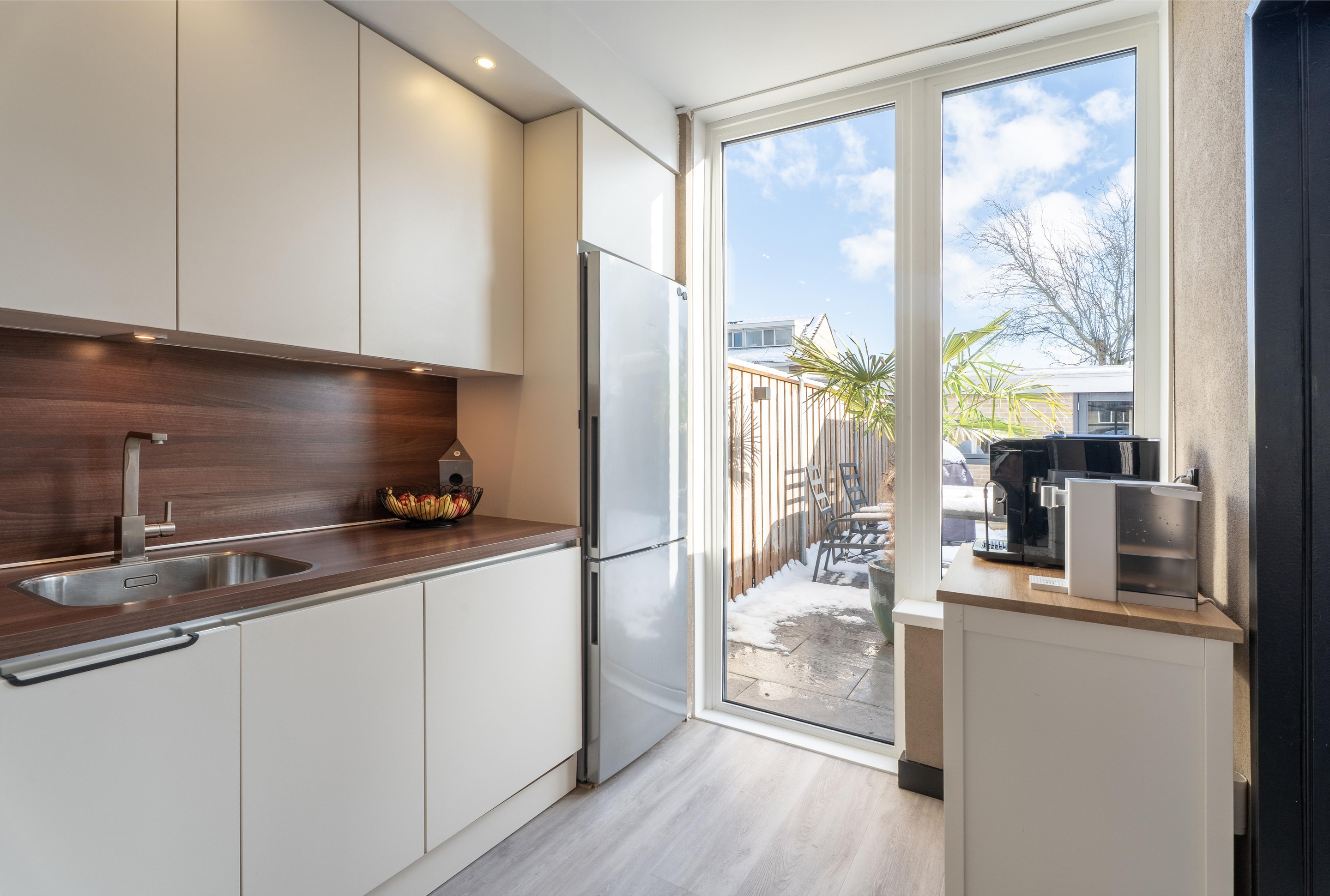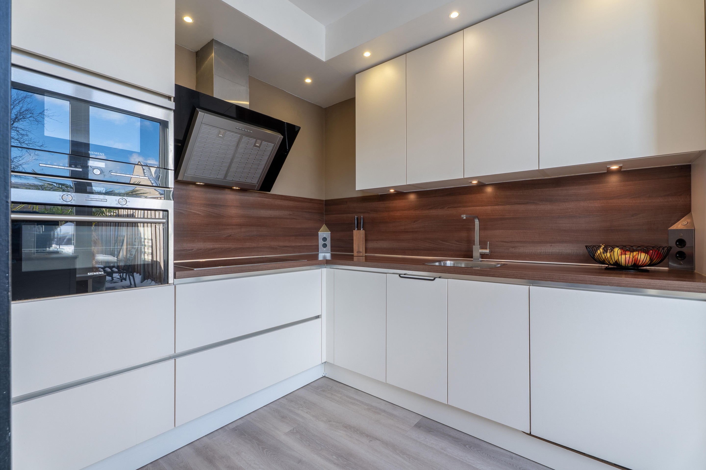 De gehele begane grond is afgewerkt met een luxe pvc-vloer met vloerverwarming en voorzien van een strakke wandafwerking.