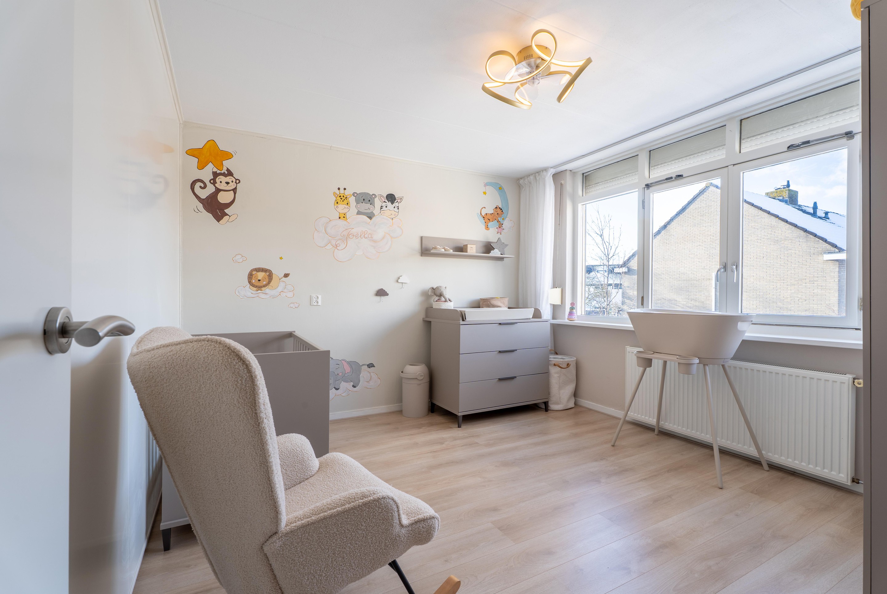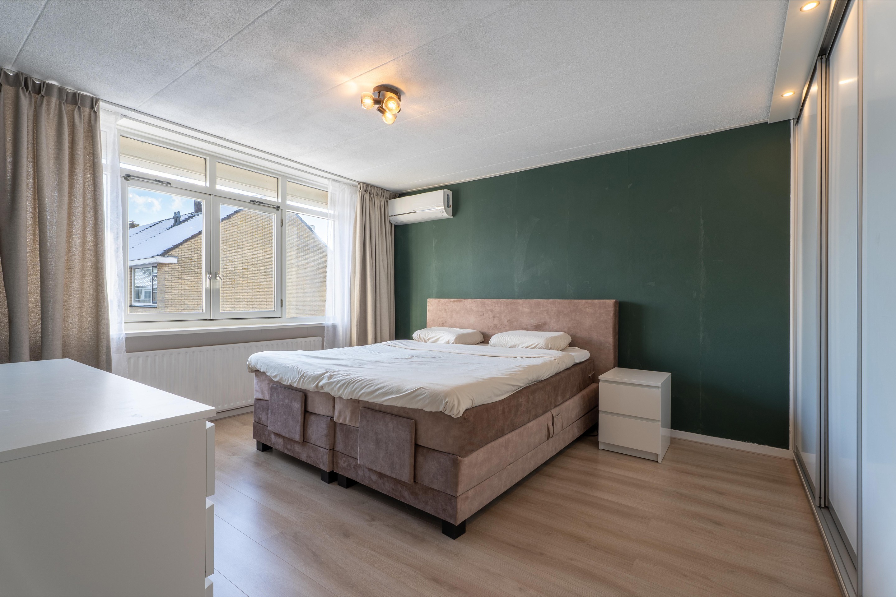 In de woonkamer zorgt de airco (2024) het hele jaar door voor een aangename temperatuur dankzij zowel koel- als verwarmingsfunctie. De erker geeft de ruimte een speelse indeling en is voorzien van elektrische screens. Daarnaast biedt de nieuwe schuifpui directe toegang tot de sfeervolle achtertuin.