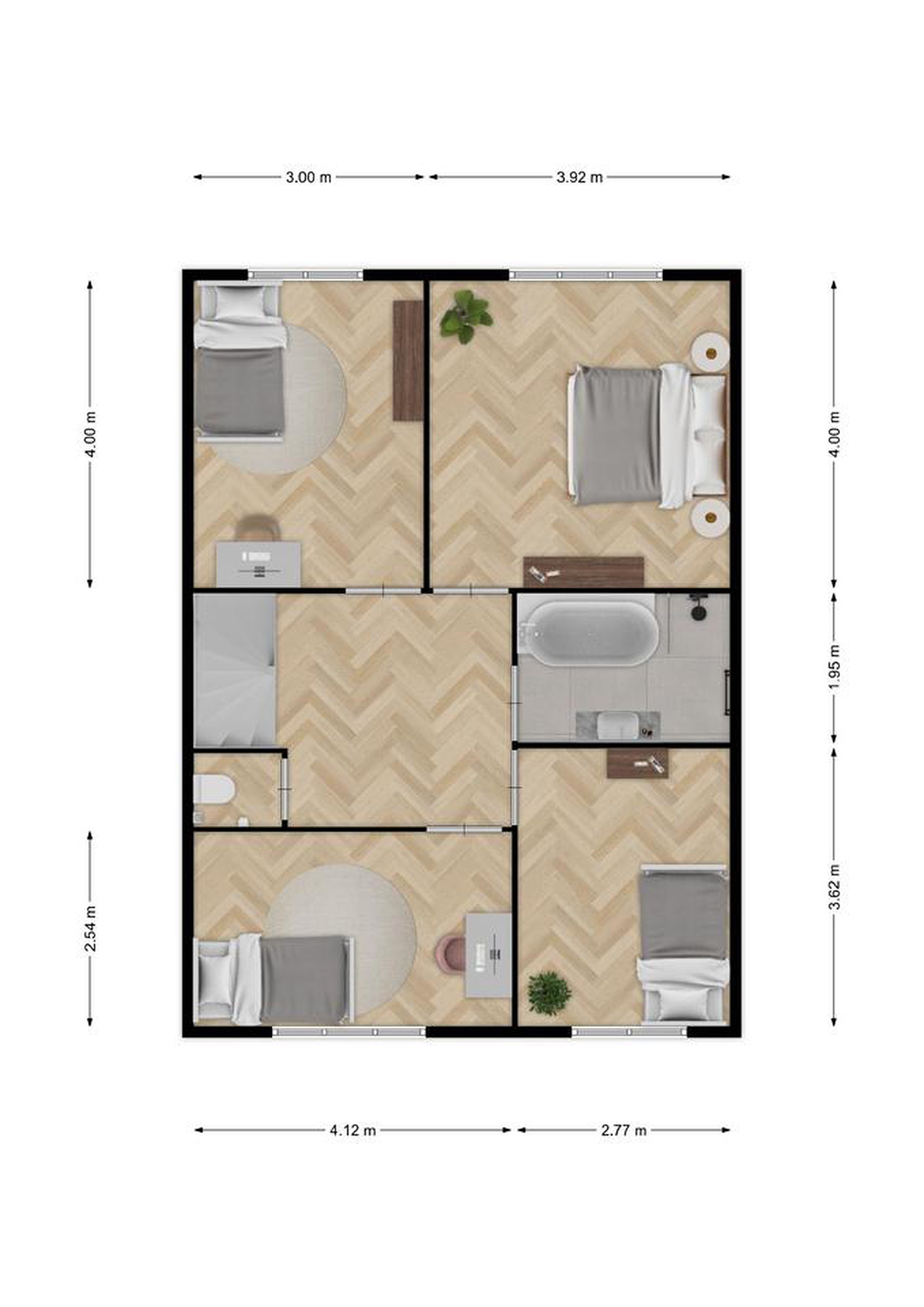- Slaapkamer 4: ca. 10 m2