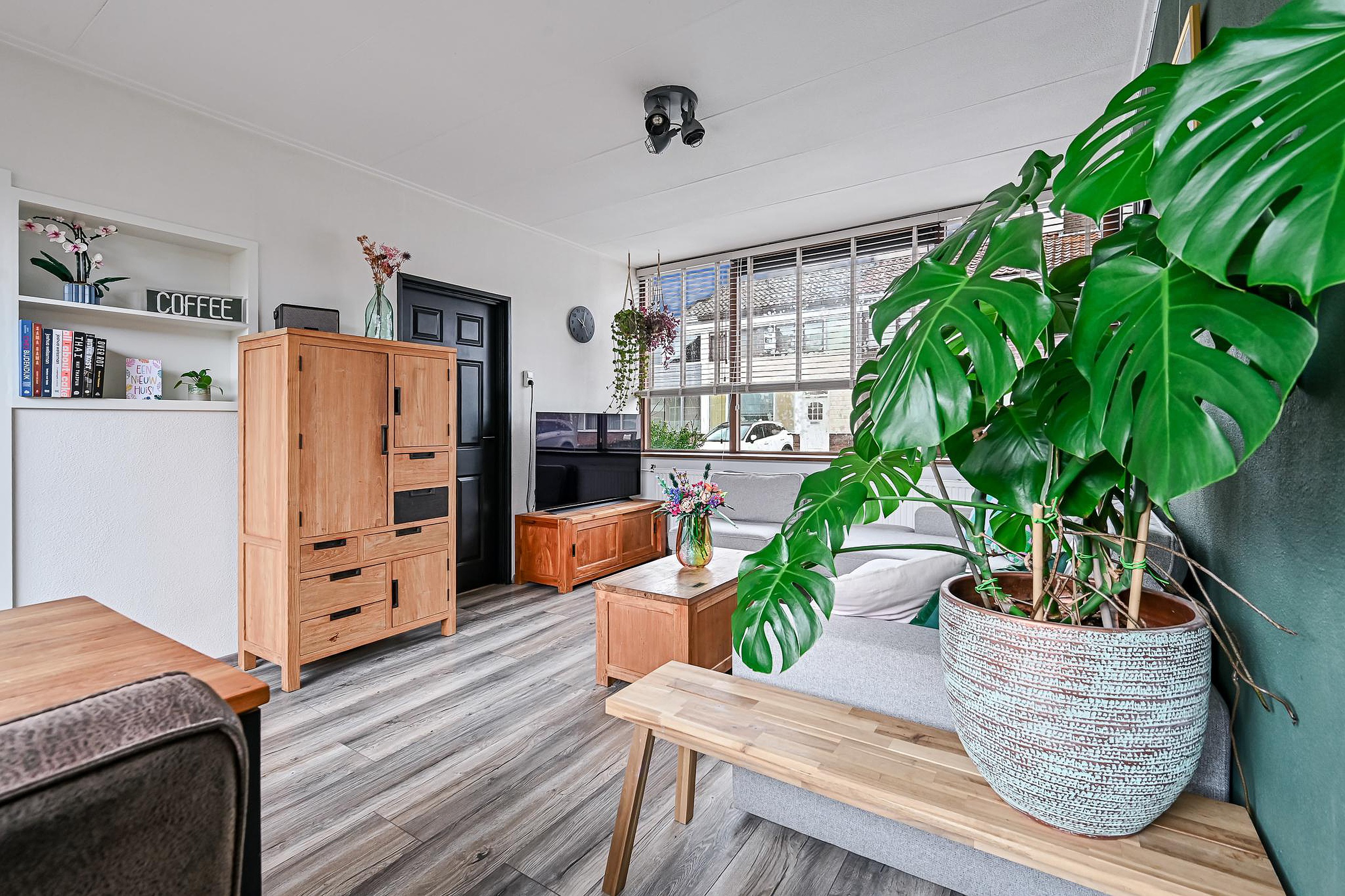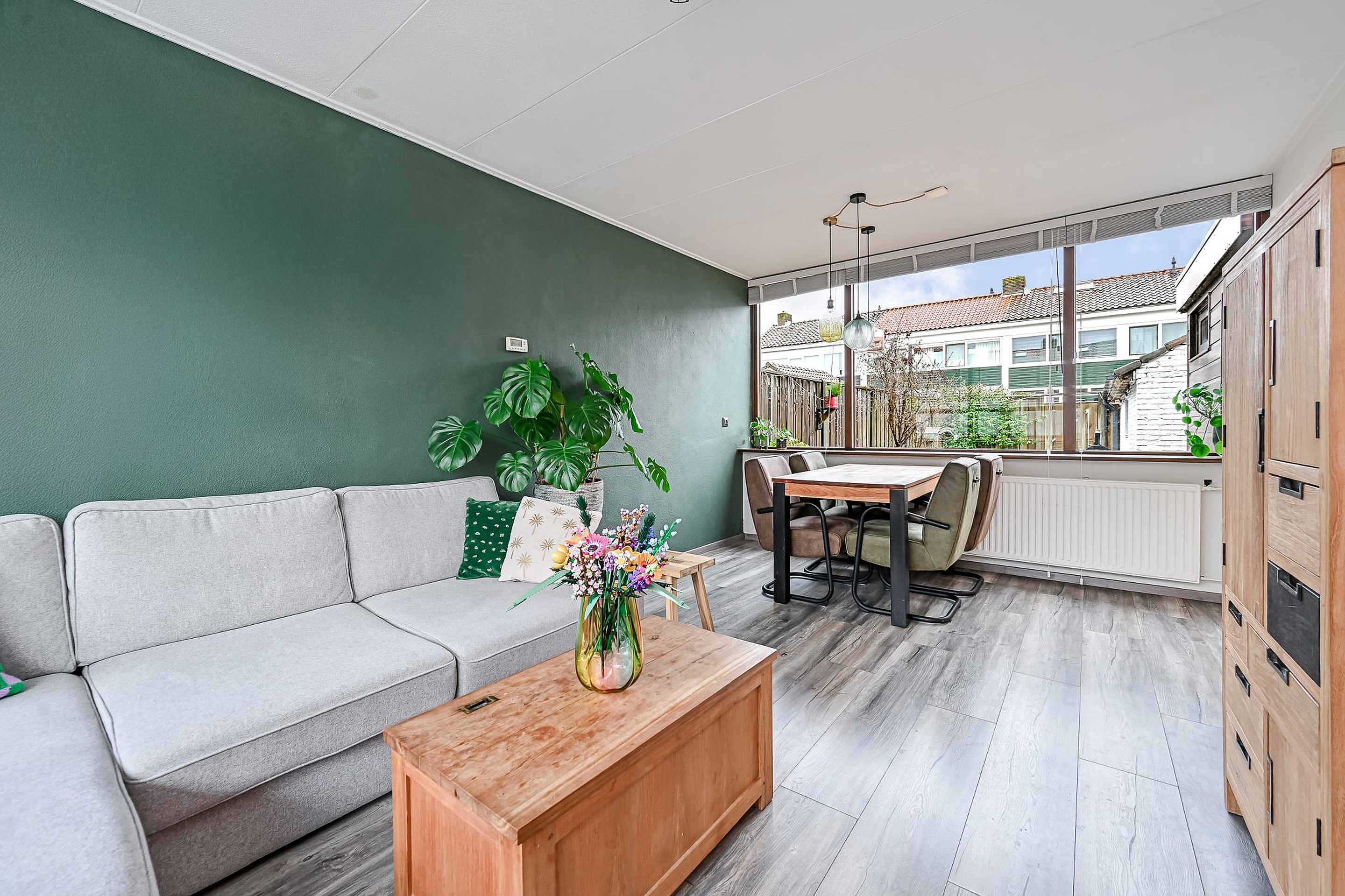 De gezellige doorzonwoonkamer kenmerkt zich door een prettige lichtinval dankzij de grote raampartijen aan zowel de voor- als achterzijde van de woning.