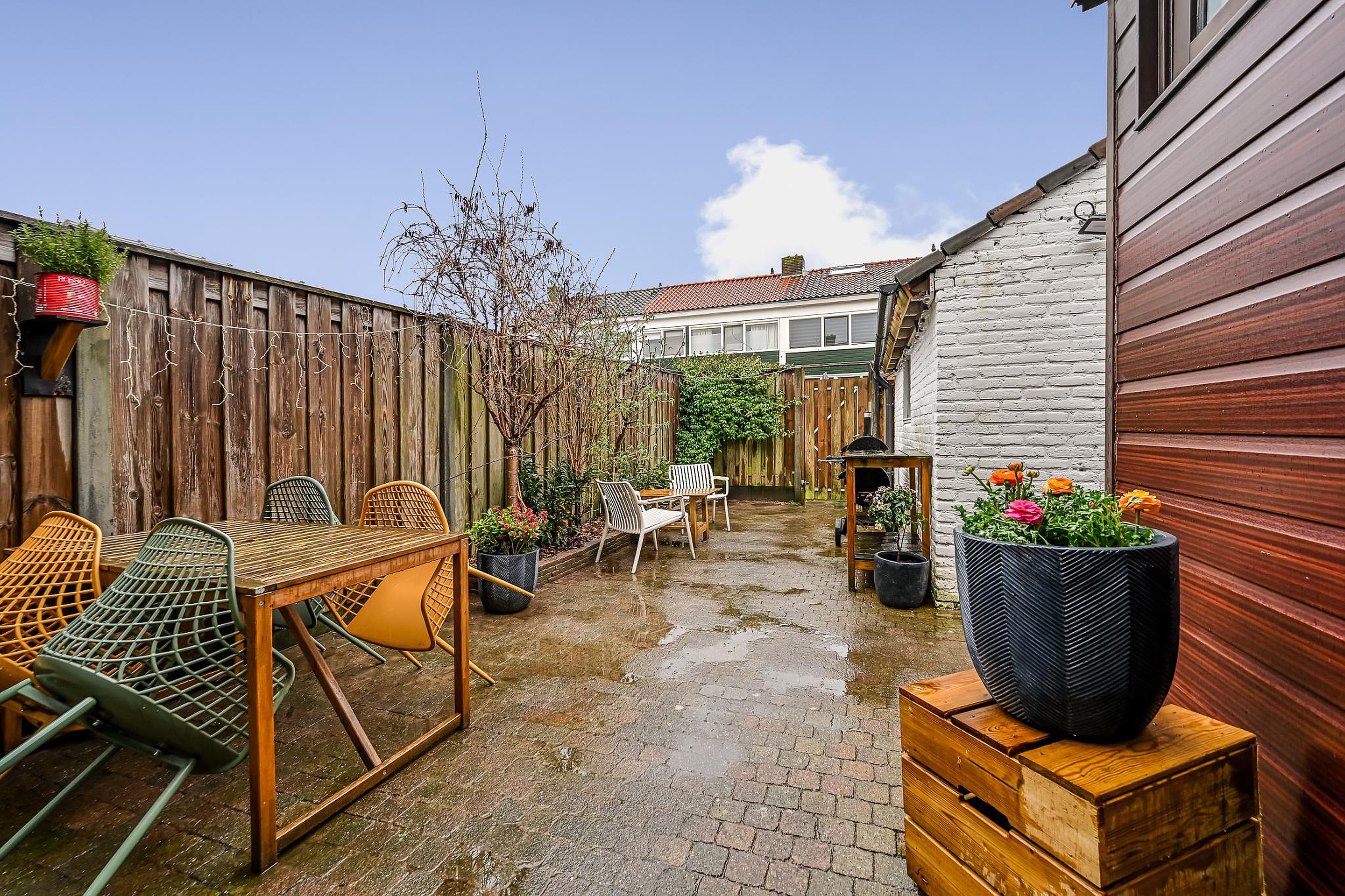 Via de tuindeur in de uitbouw stap je direct de achtertuin in, welke is gelegen op het zonnige zuidwesten. Hierdoor kun je hier tot in de avonduren genieten van de zon. Tevens is de tuin voorzien van een praktische vrijstaande stenen berging en een achterom.