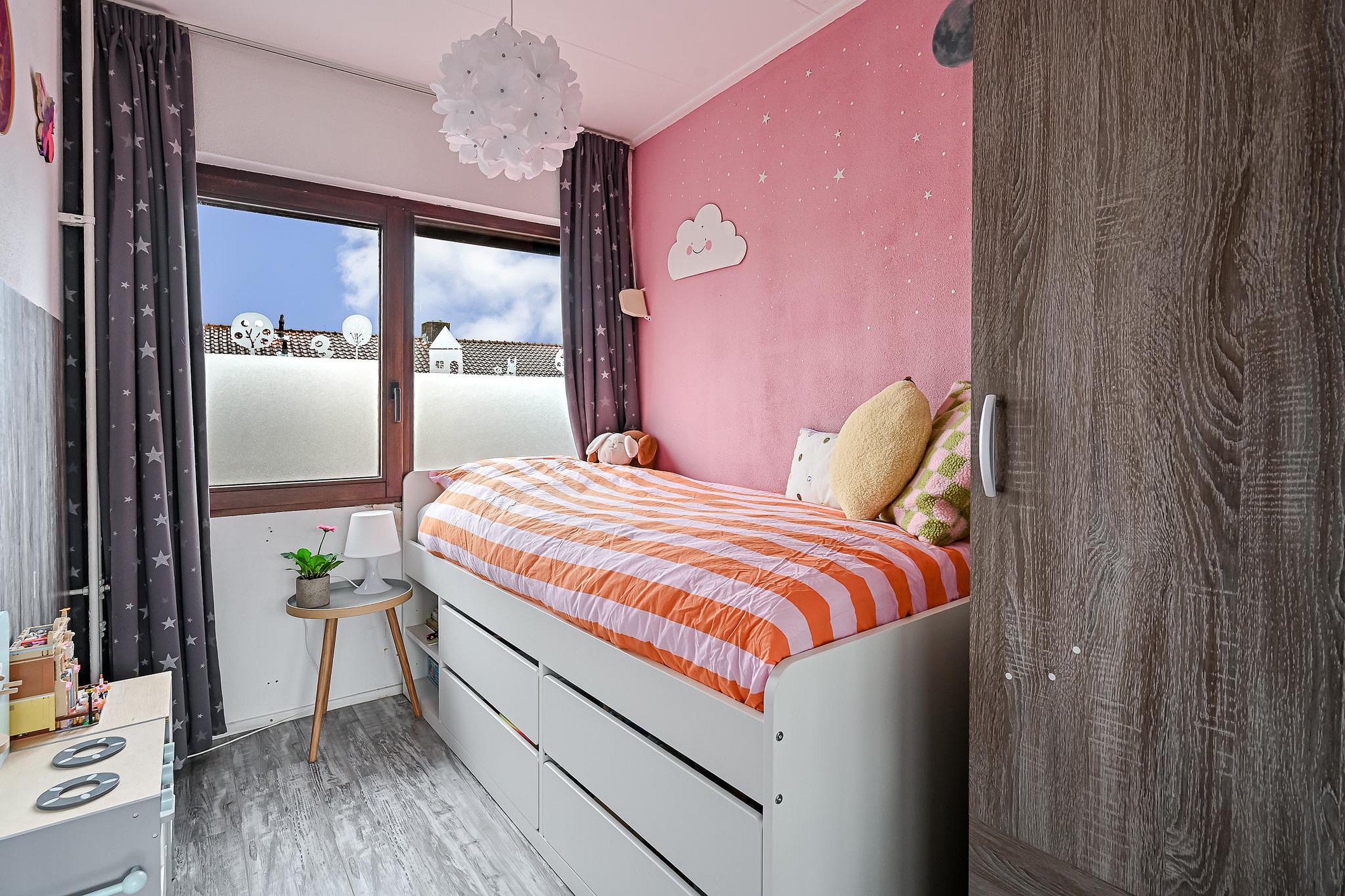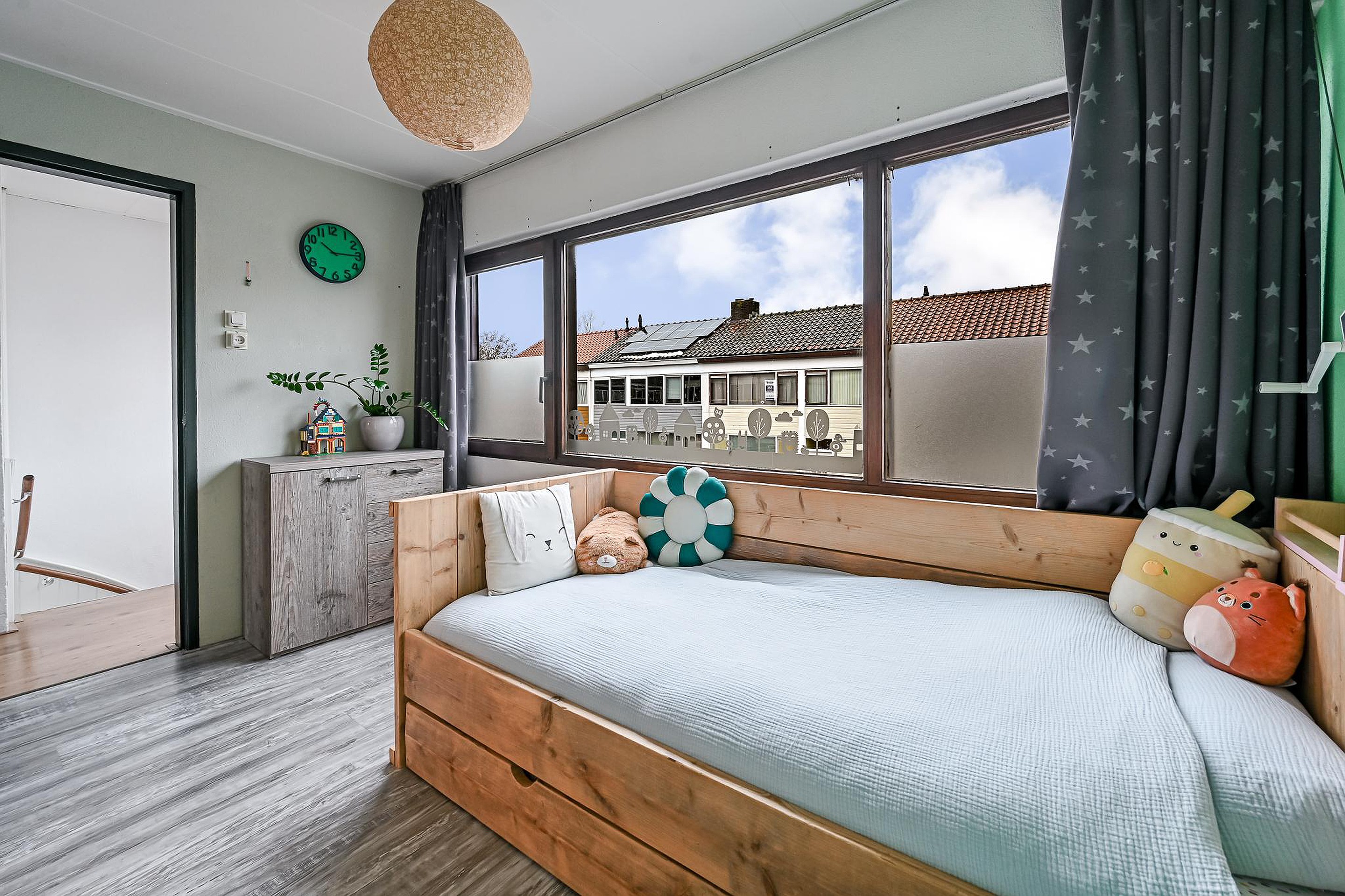 Via de trapopgang bereik je de eerste verdieping, welke is ingedeeld met drie slaapkamers en een praktisch washok. De gehele verdieping is afgewerkt met een laminaatvloer, wat zorgt voor een verzorgde en uniforme uitstraling. Daarnaast is iedere slaapkamer voorzien van een handmatig bedienbaar rolluik.