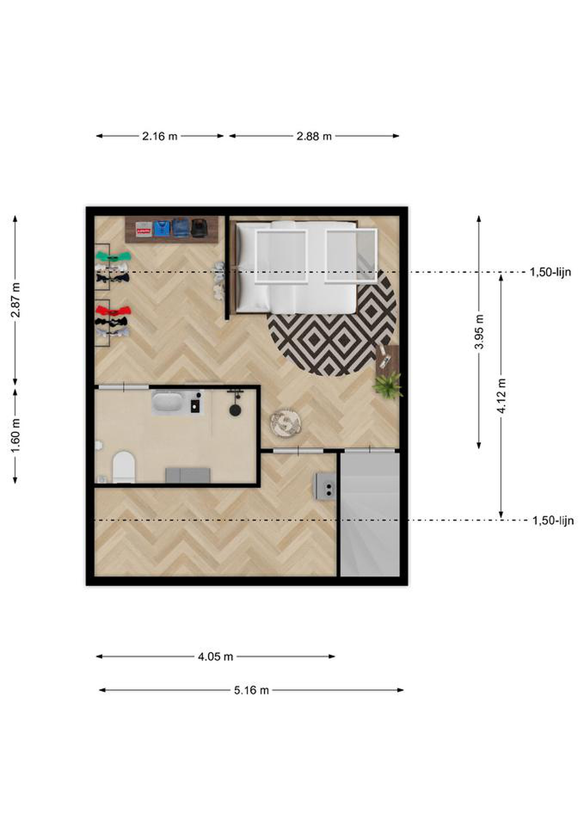 Op deze verdieping bevindt zich tevens een berging met de cv-installatie.