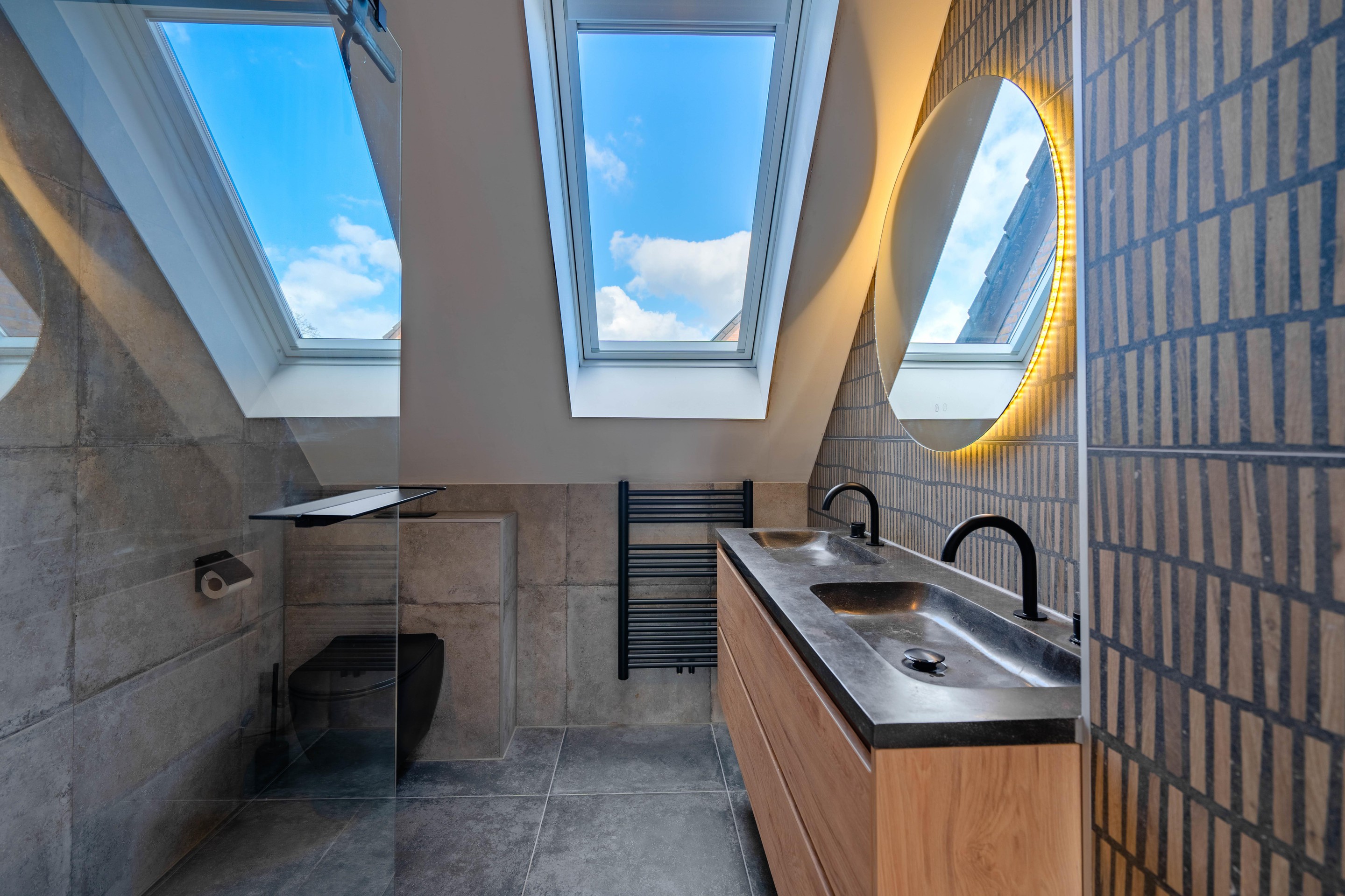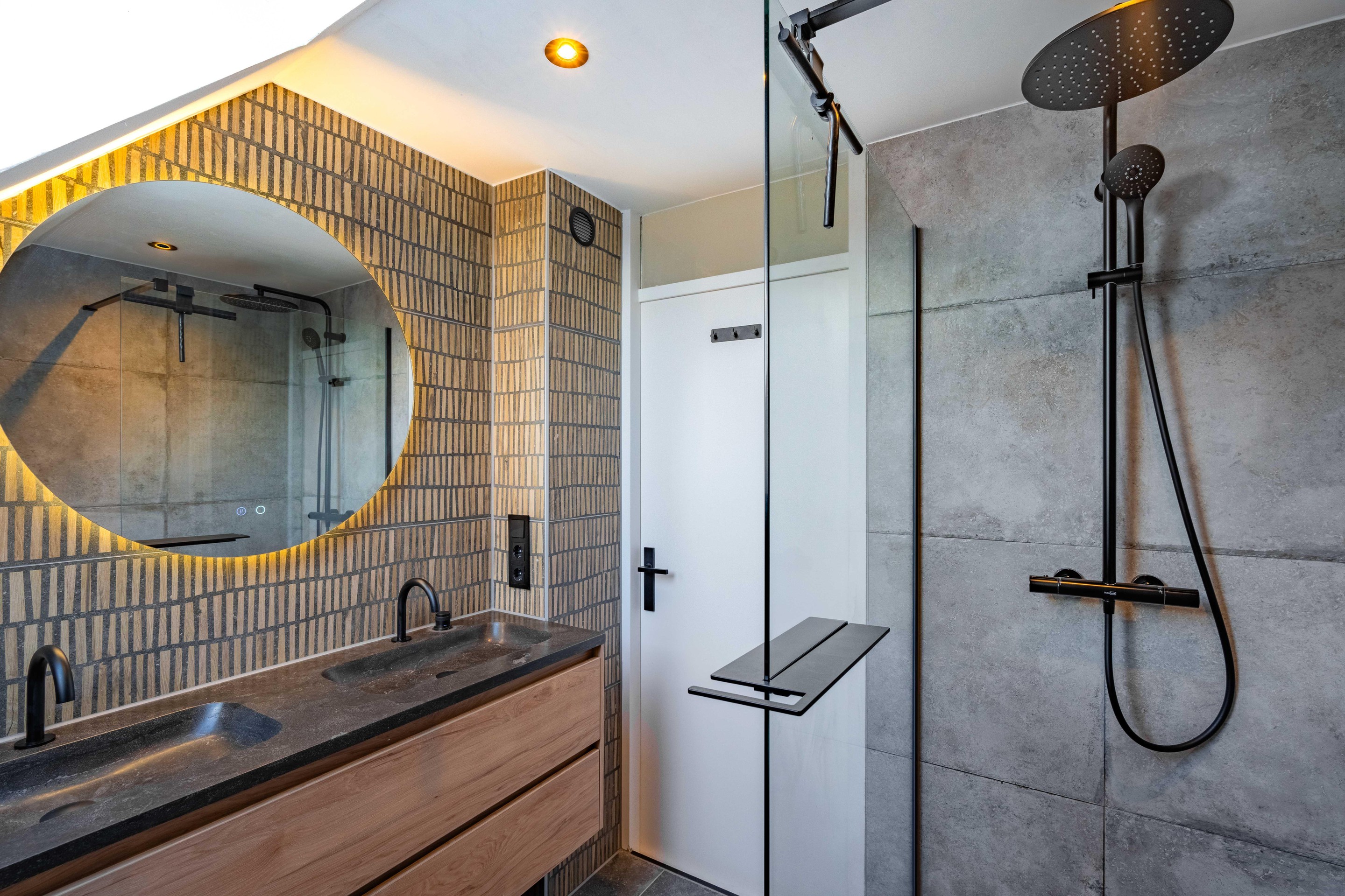 De master bedroom is voorzien van airco, en ook de badkamer is volledig vernieuwd in 2023. Deze is modern uitgevoerd met inbouwspotjes, mechanische ventilatie, elektrische radiator, toilet en een strakke eigentijdse afwerking.