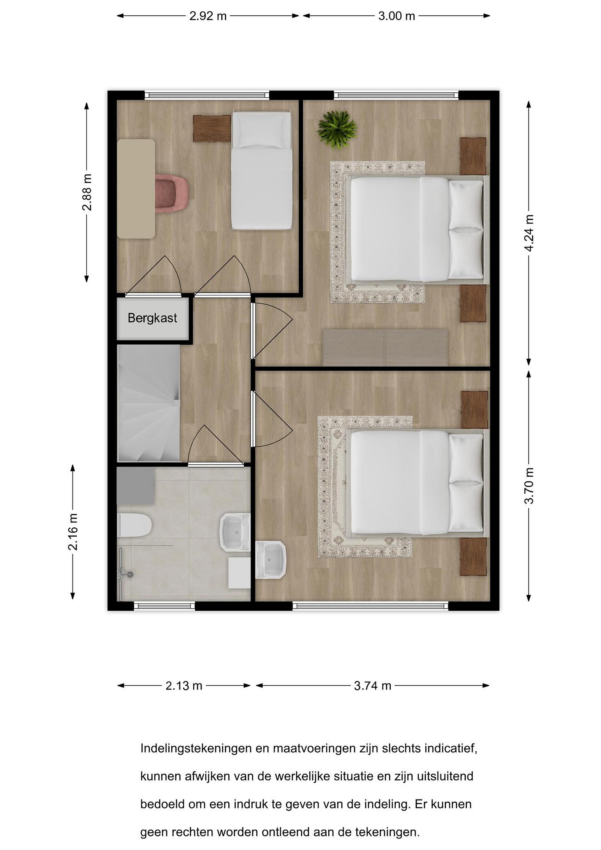 Slaapkamer 2 is circa 300 cm x 424 cm