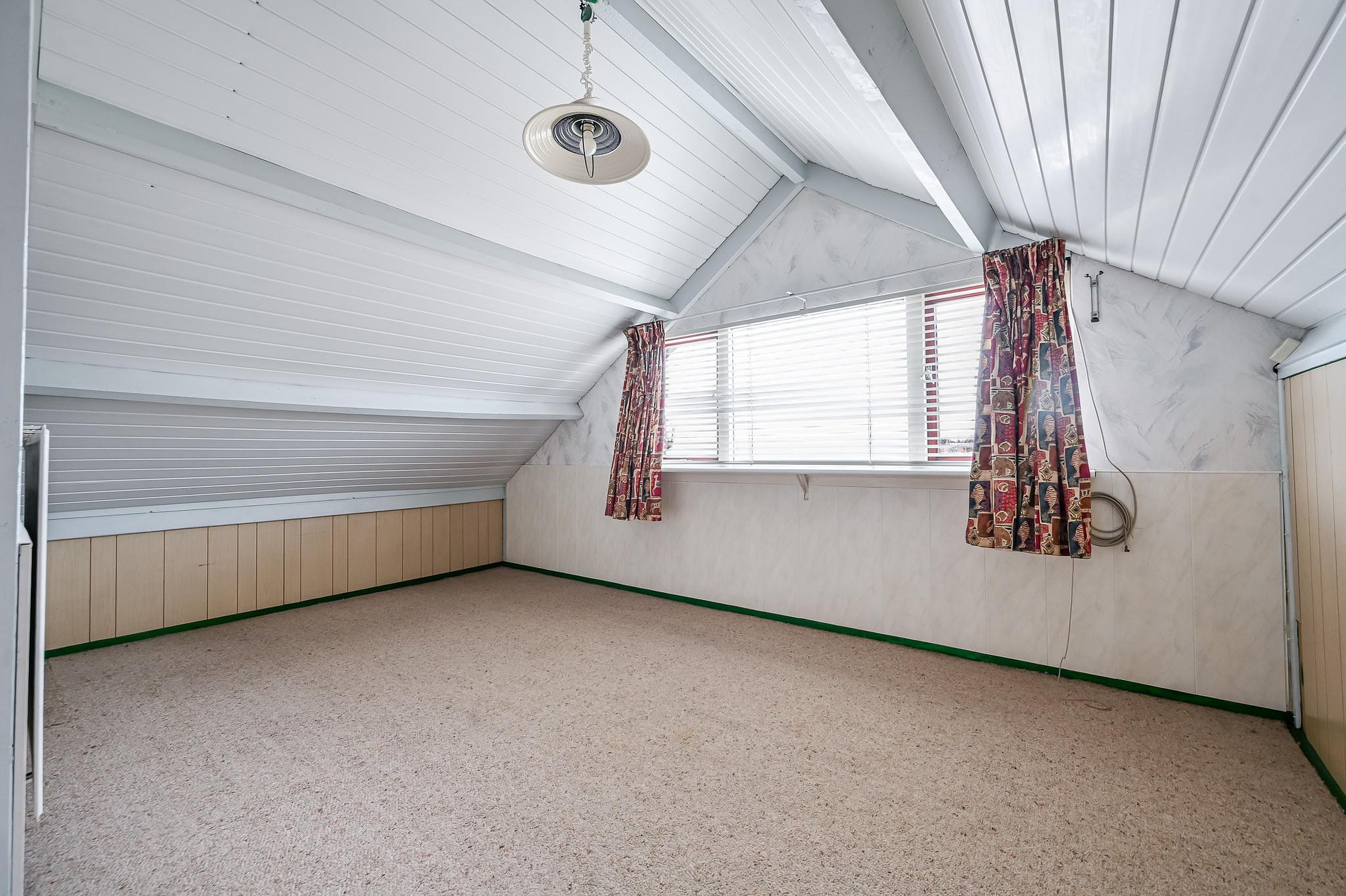 De zolderetage is verdeeld in een ruime slaapkamer met een vaste bergkast en een voorzolder met dakkapel en de opstelling voor de Cv-ketel. Onder de schuine delen van het dak is veel bergruimte aanwezig.
