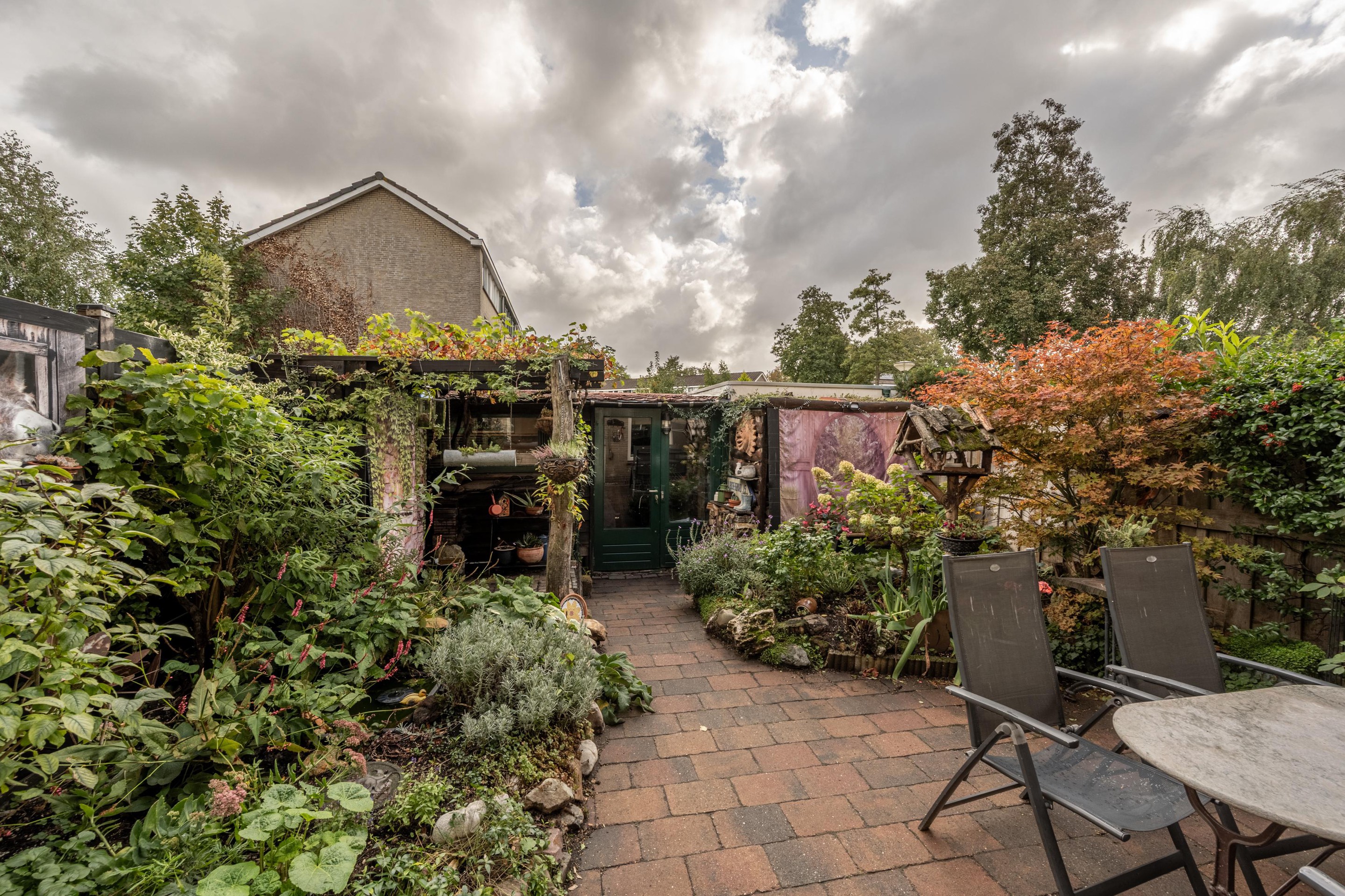 De achtertuin is gelegen op het oosten: een heerlijke plek om in de ochtendzon je eerste kop koffie te drinken of in de middag lekker buiten te zitten. Achterin staat een stenen berging en er is een eigen garage. Het elektrisch zonnescherm aan de achtergevel maken het geheel compleet.