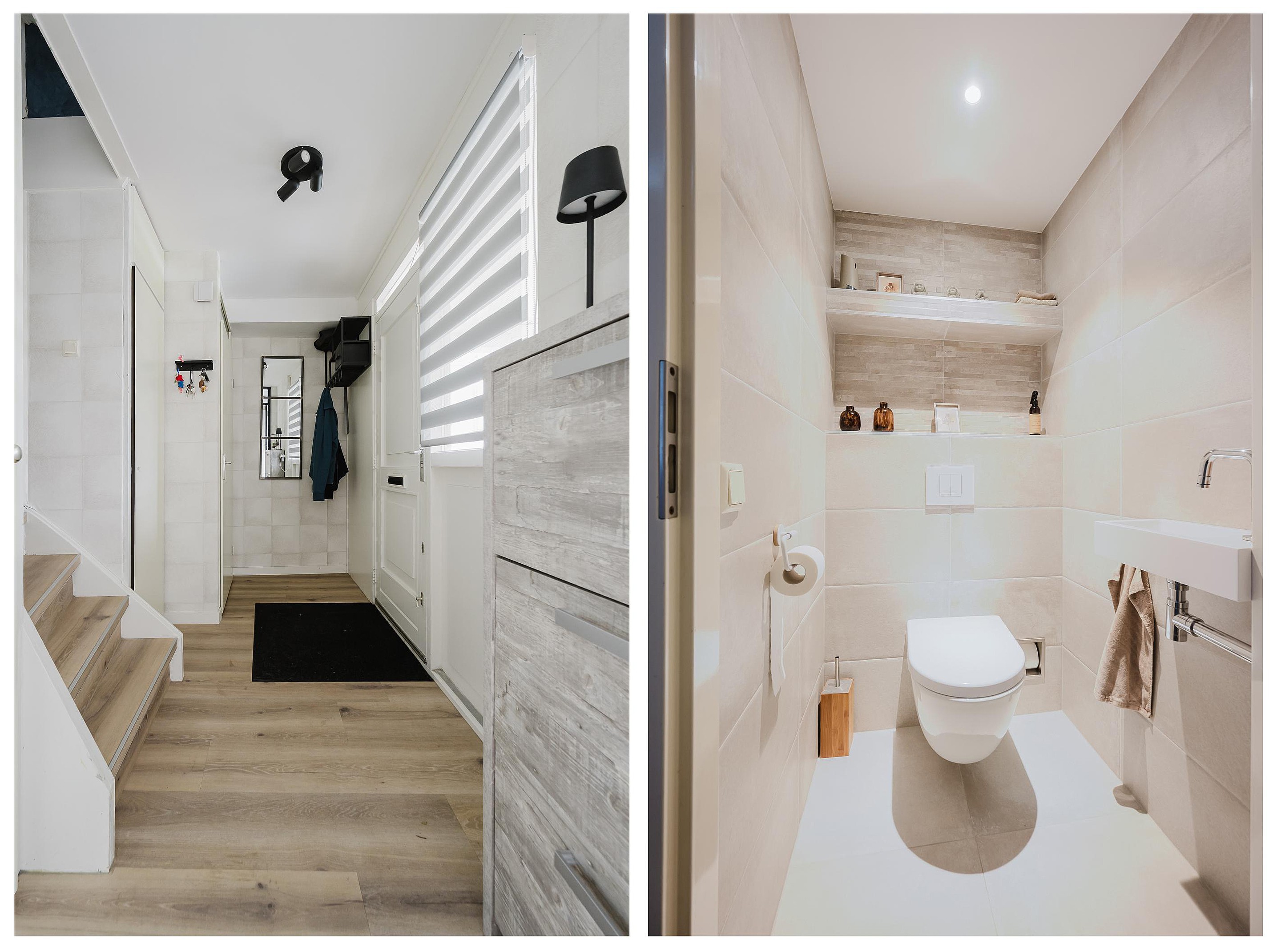 Via de voortuin met carport en eigen oprit bereik je de entree van de woning. In de hal bevinden zich de trapopgang, de moderne toiletruimte (2022) en de toegang tot de woonkamer.