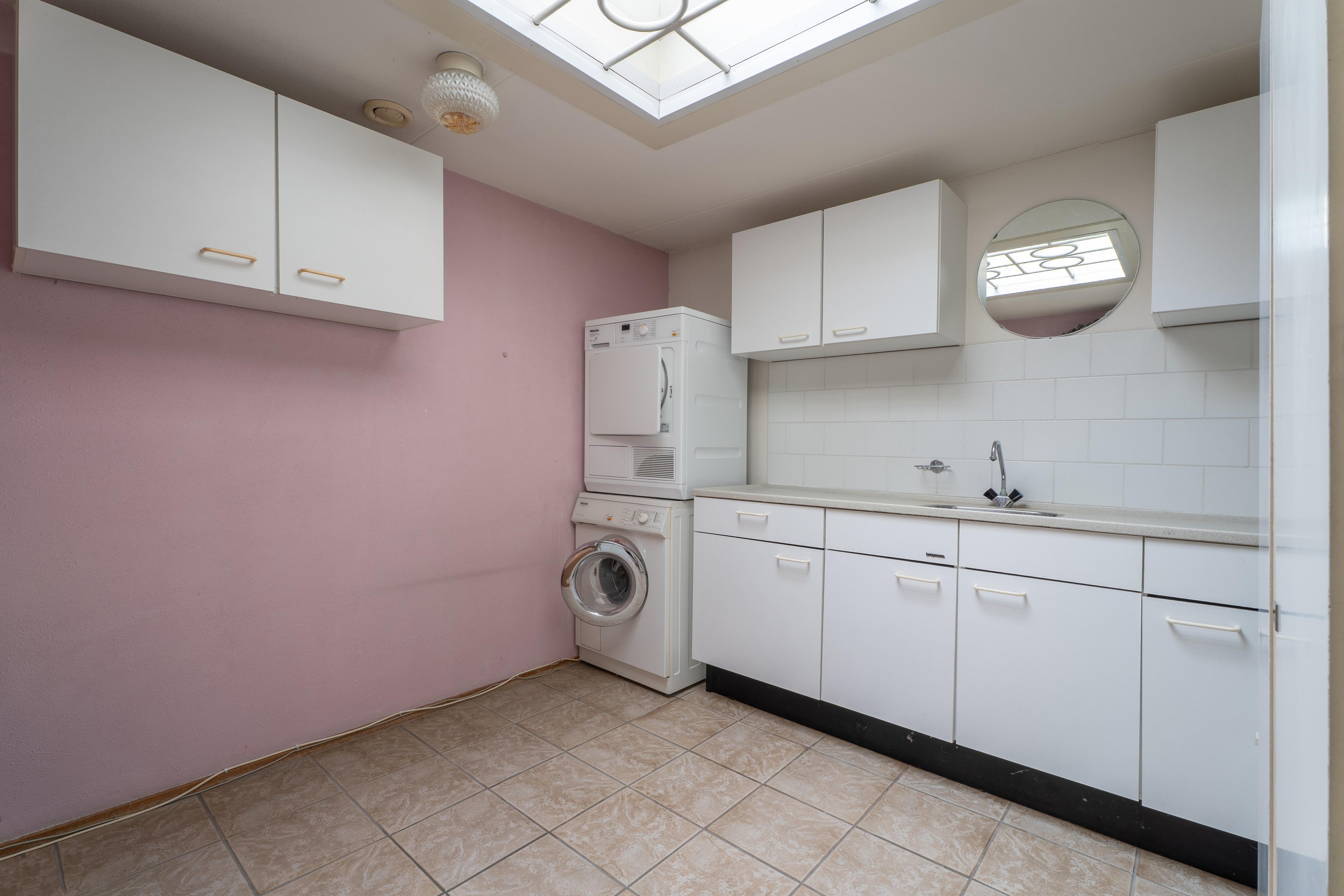De bijkeuken is voorzien van een plavuizen vloer en biedt volop praktisch gemak. Hier bevinden zich de aansluitingen voor wasmachine en droger, evenals een extra wateraansluiting.
