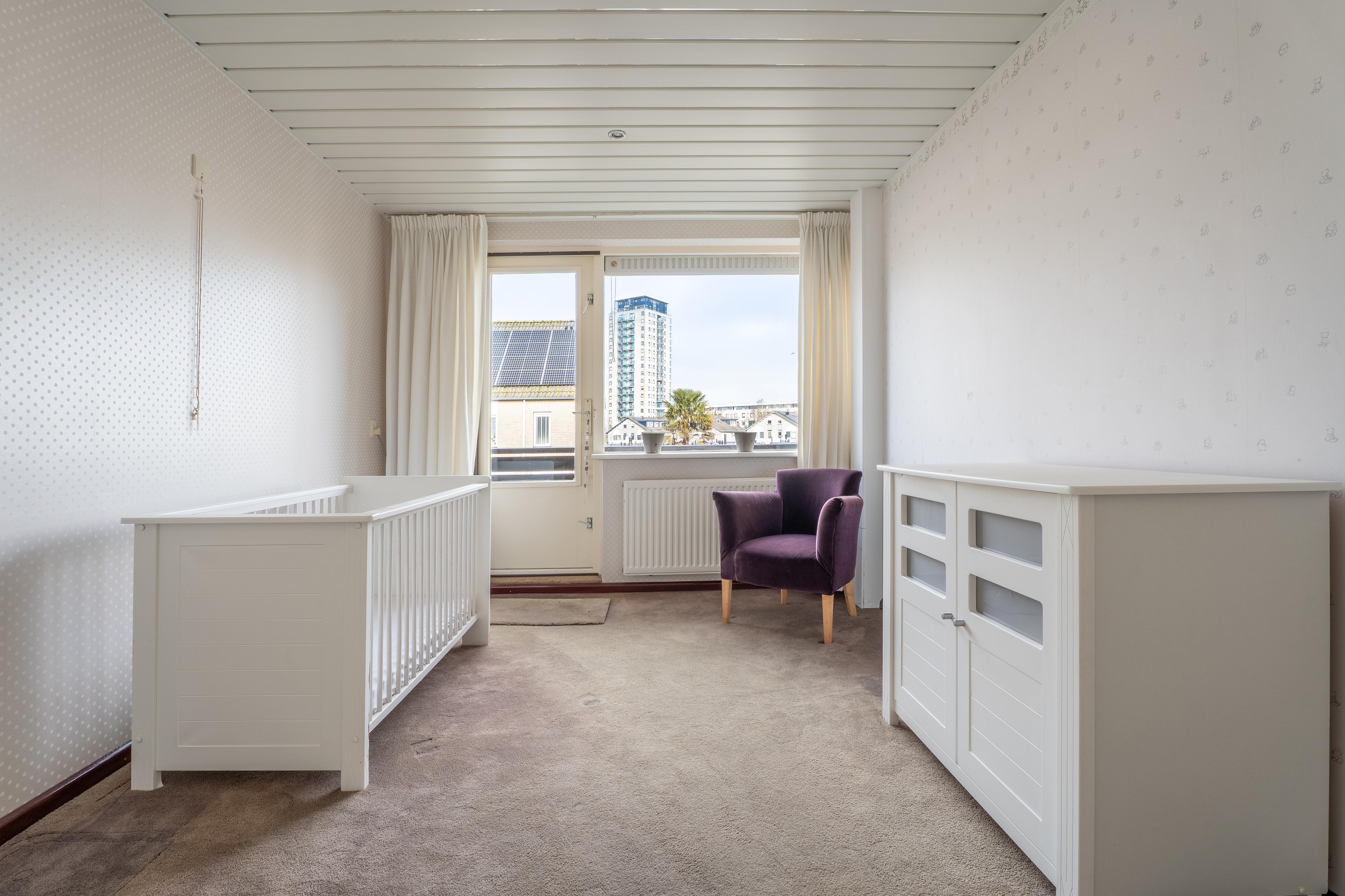 In de slaapkamer aan de voorzijde bevindt zich een bergruimte met de cv-installatie en de mechanische ventilatie, netjes en praktisch uit het zicht geplaatst.