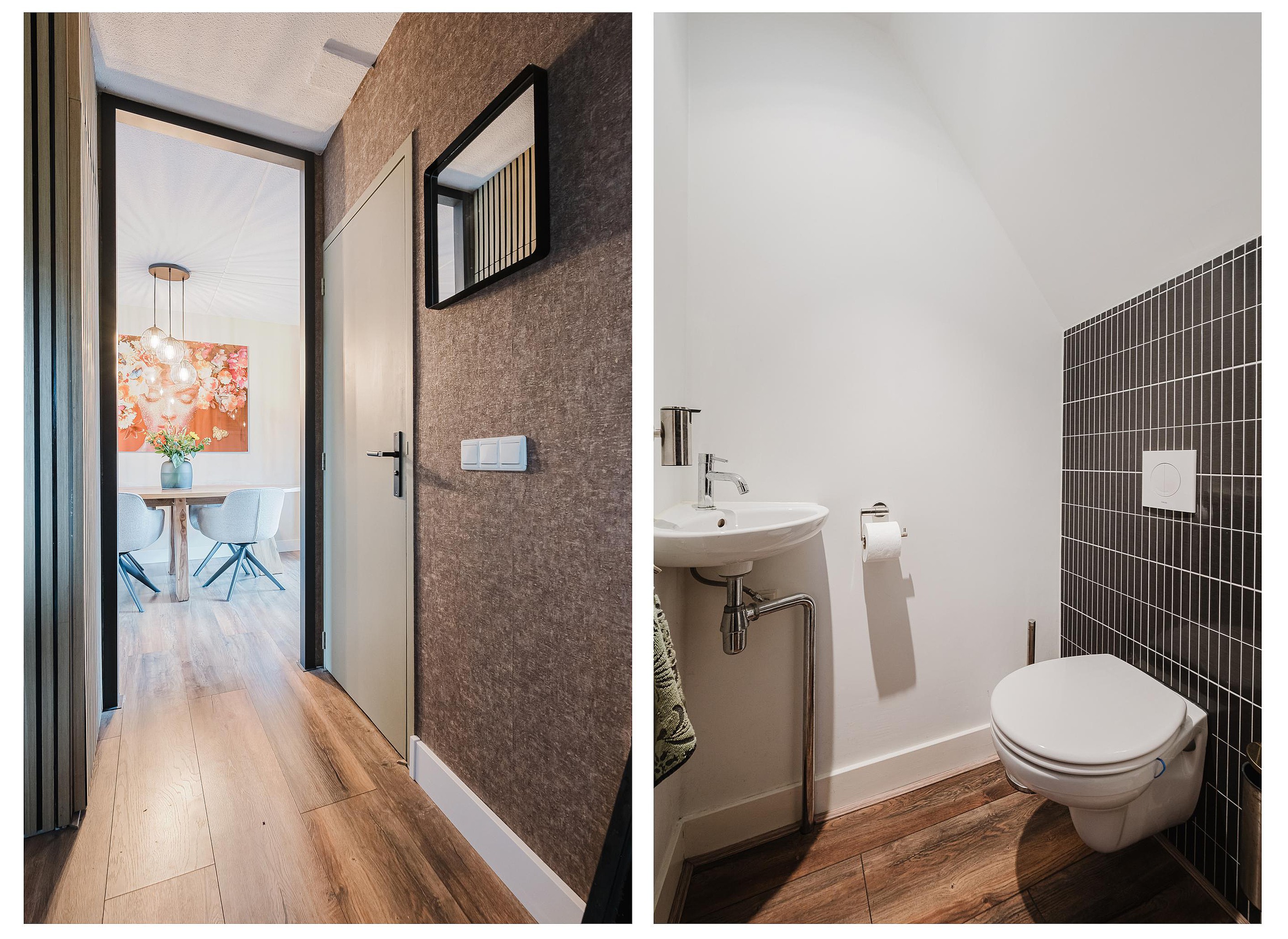 De hal biedt toegang tot de trapopgang, het toilet en de woonkamer.