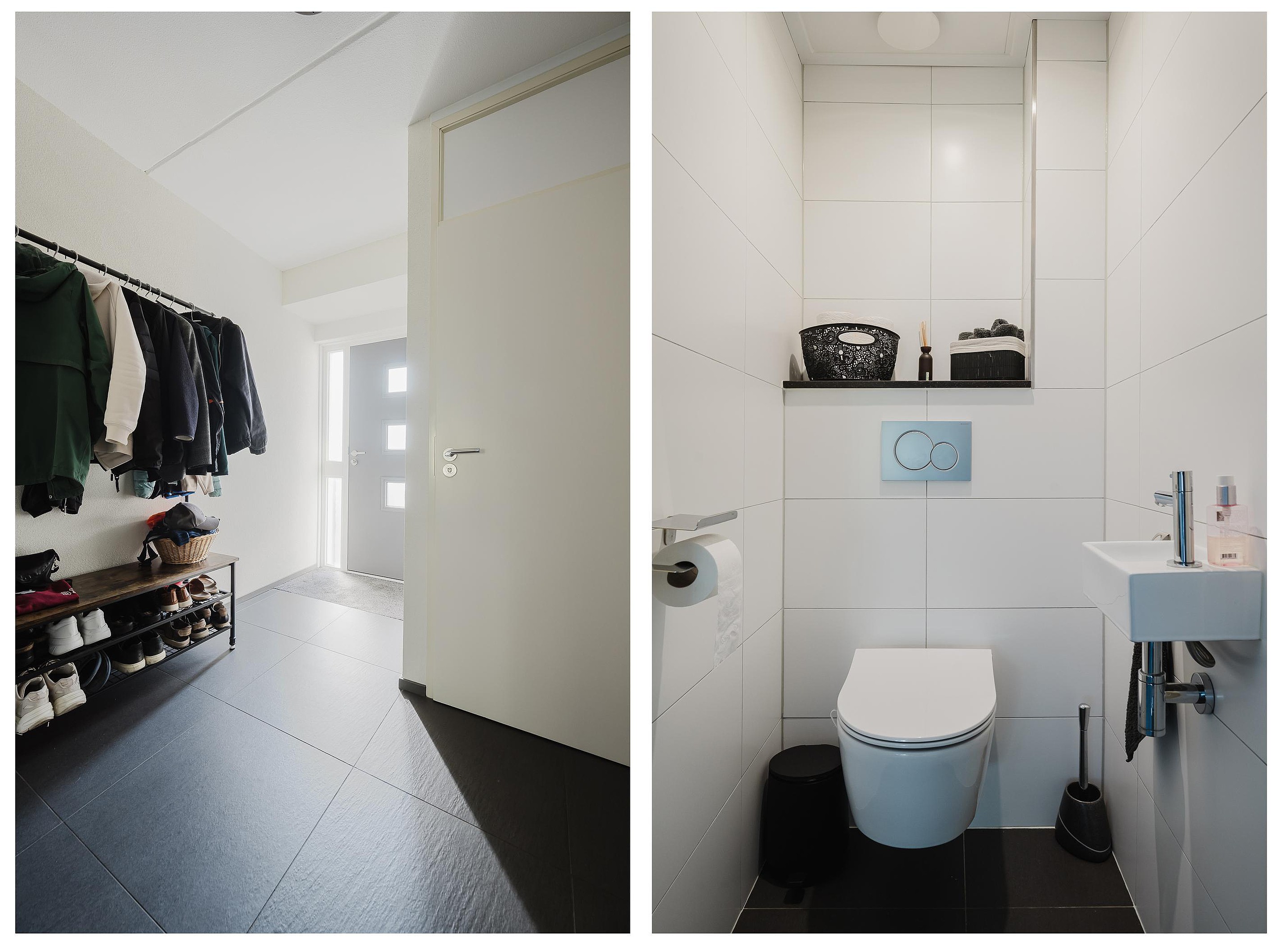 De woningentree biedt toegang tot de hal. Via de hal bereik je het toilet, de meterkast, de bijkeuken en de woonkamer.