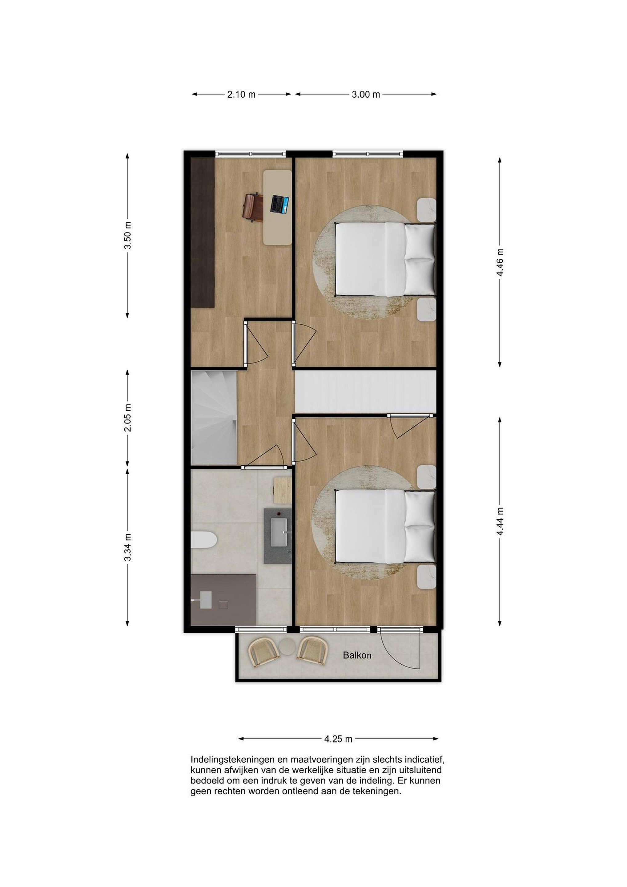 - Slaapkamer 4 is circa 350 cm x 210 cm