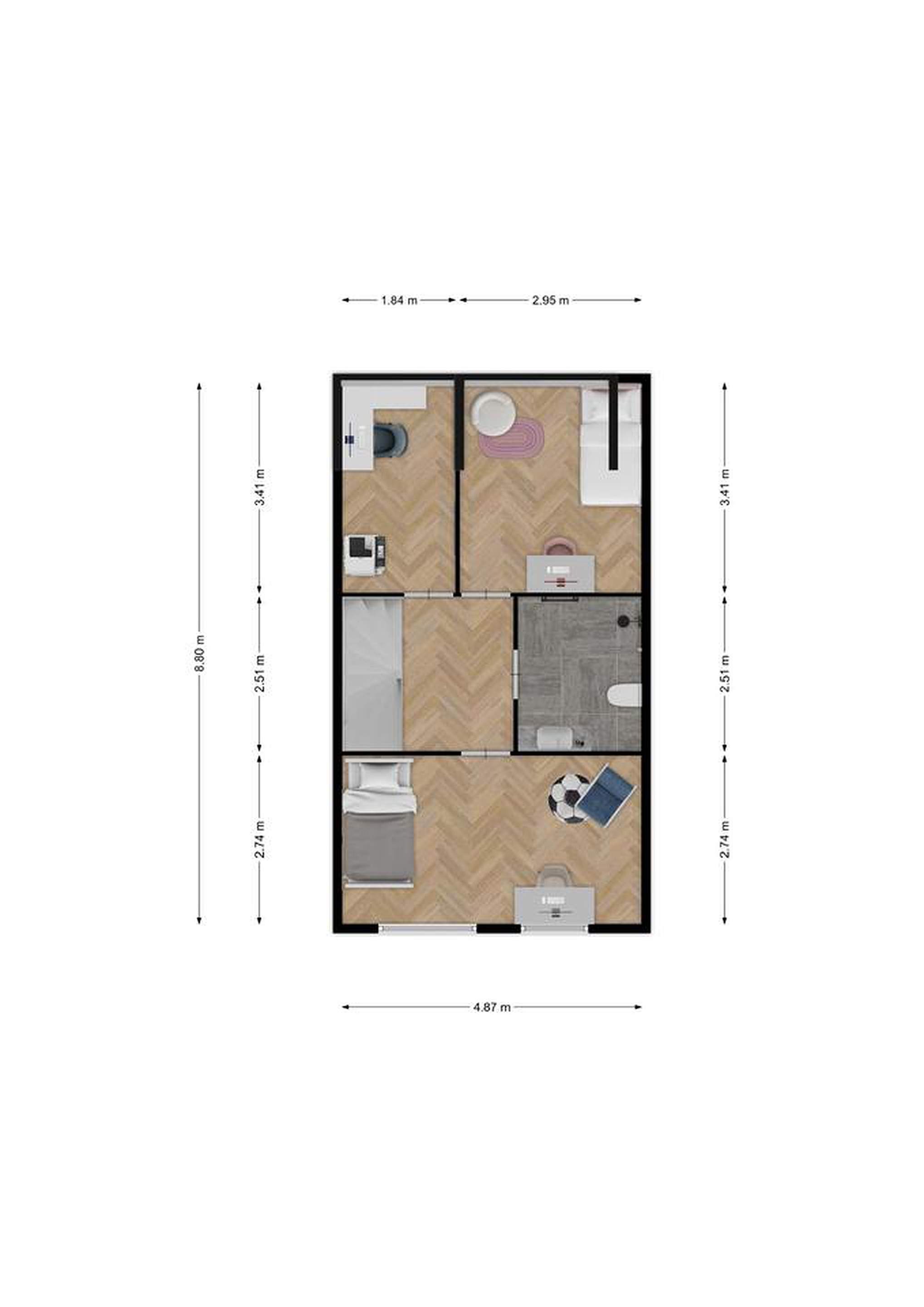 - Badkamer: ca. 5 m2