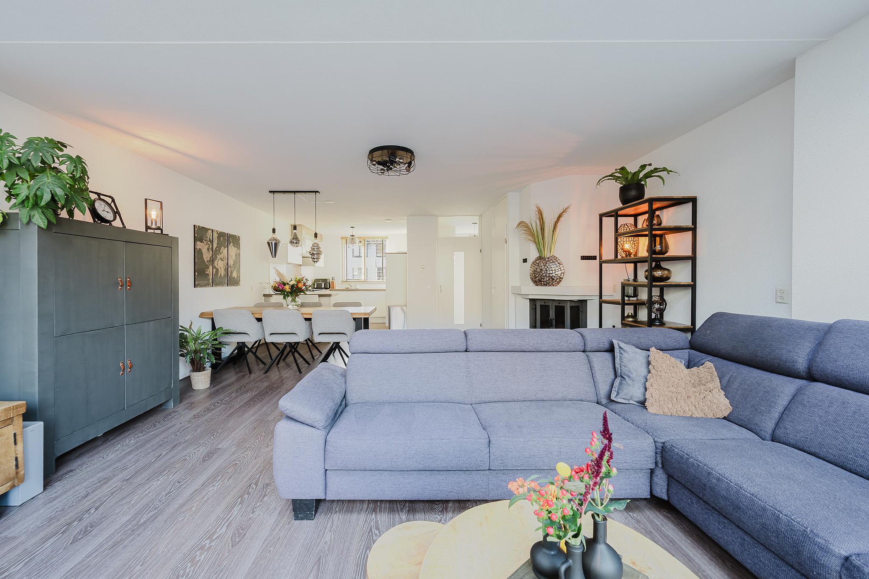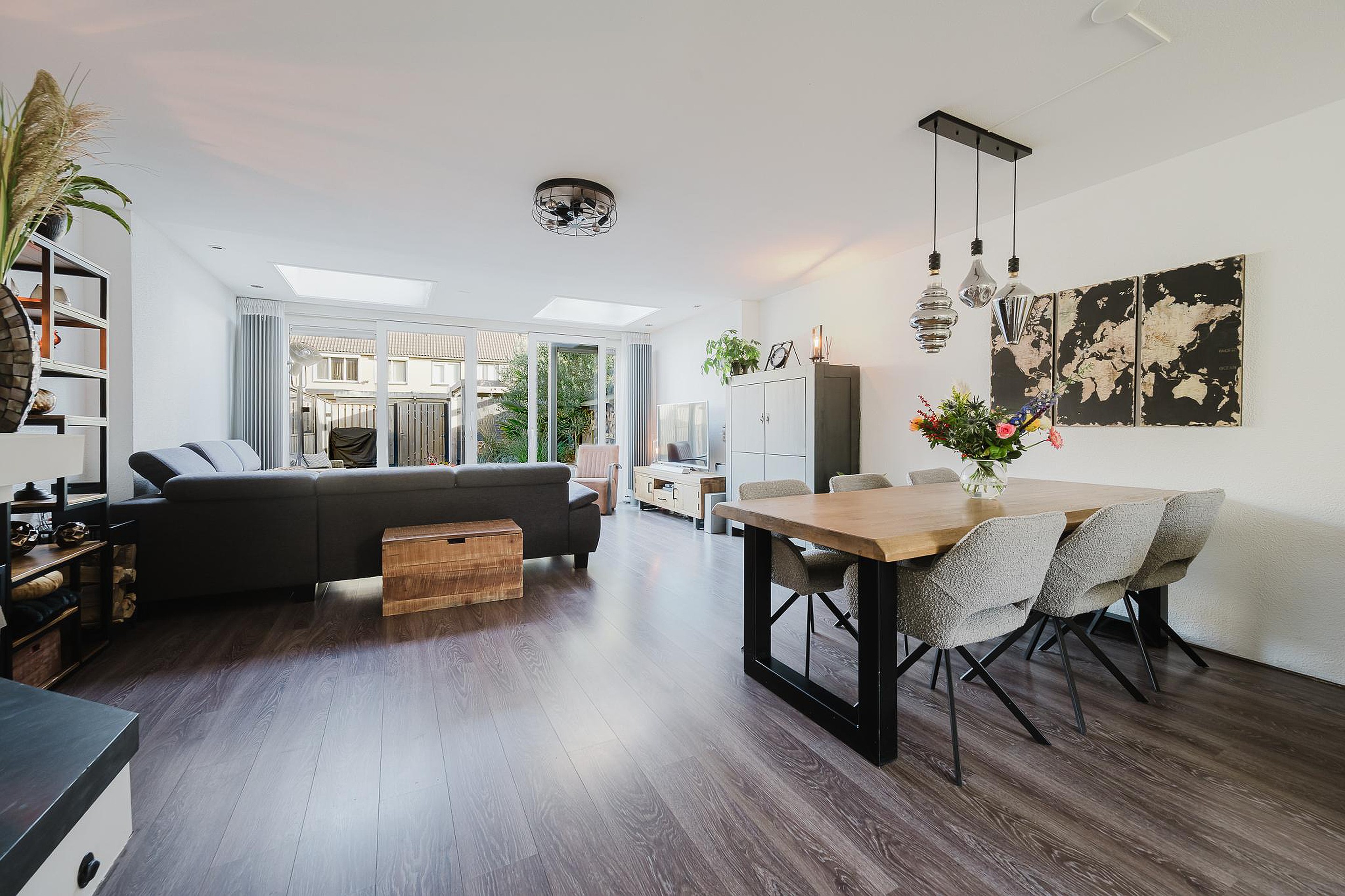 Bij binnenkomst valt direct de zeer ruime woonkamer op. Dankzij de uitbouw met lichtkoepels geniet je hier de hele dag van een prachtige natuurlijke lichtinval, wat zorgt voor een prettige en open sfeer.