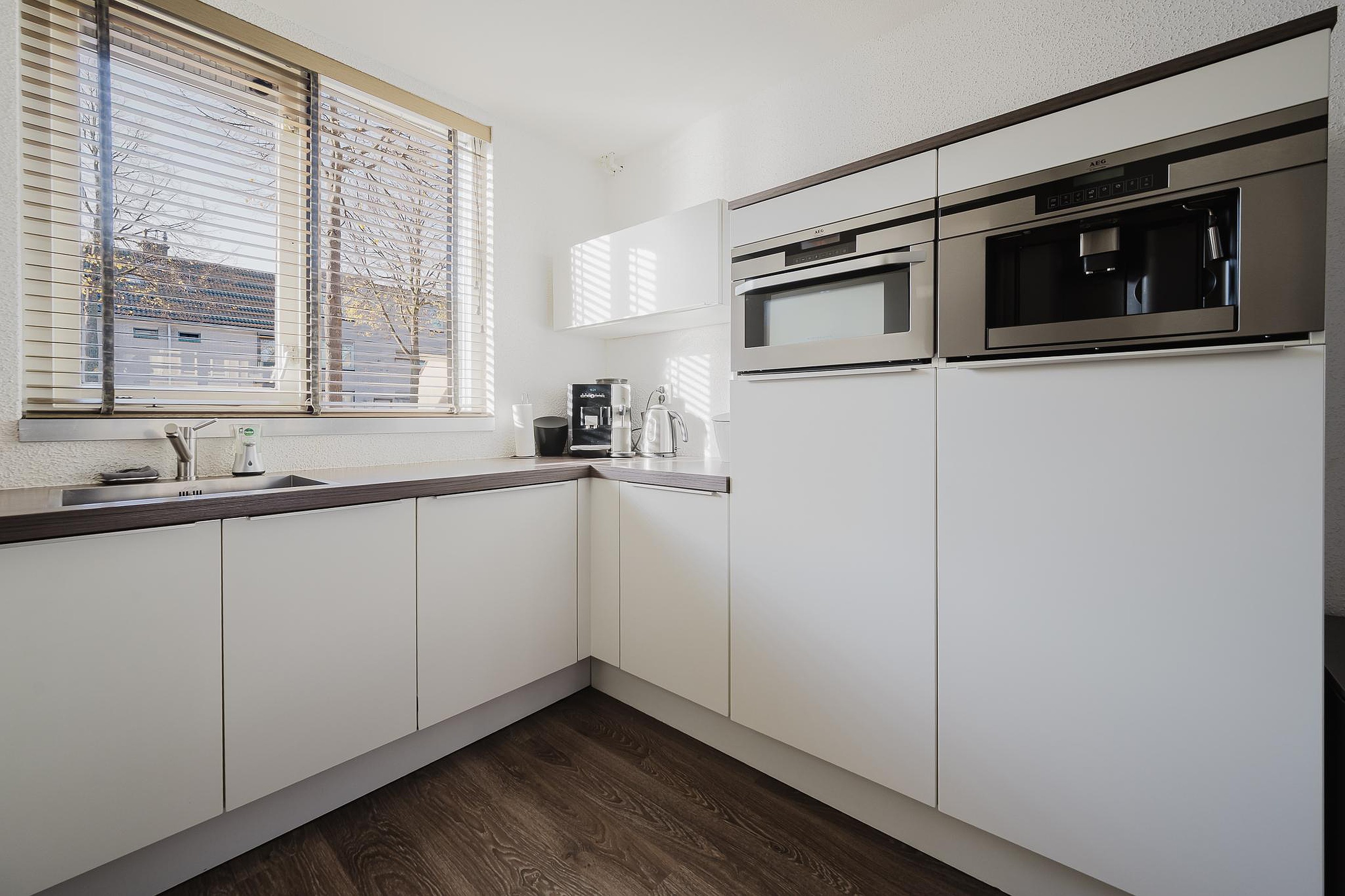 Eenmaal terug in de woonkamer bereik je aan de voorzijde de ruime open keuken.