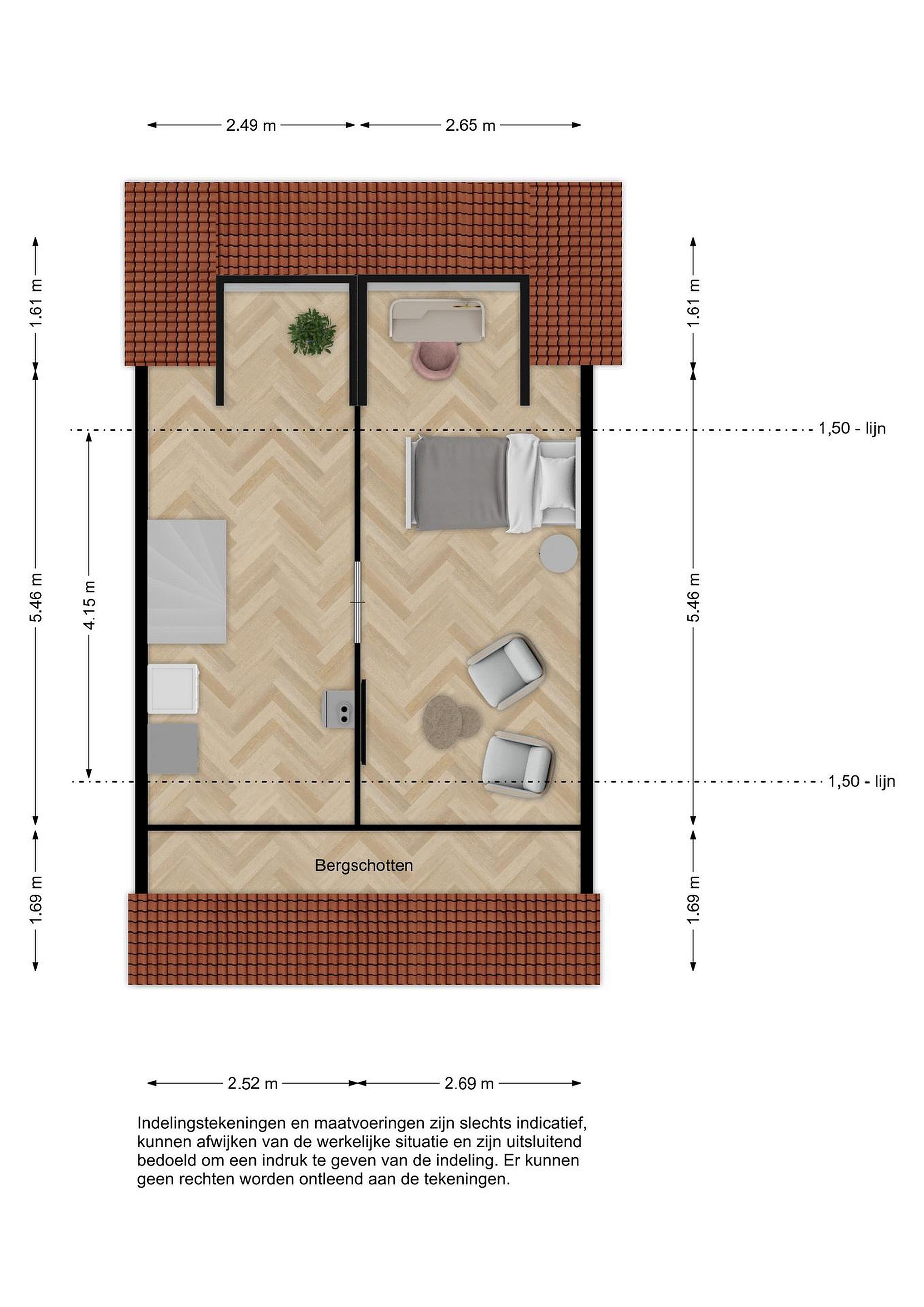 - Slaapkamer 4 is circa 274 cm x 415 cm (tot 150-lijn)
