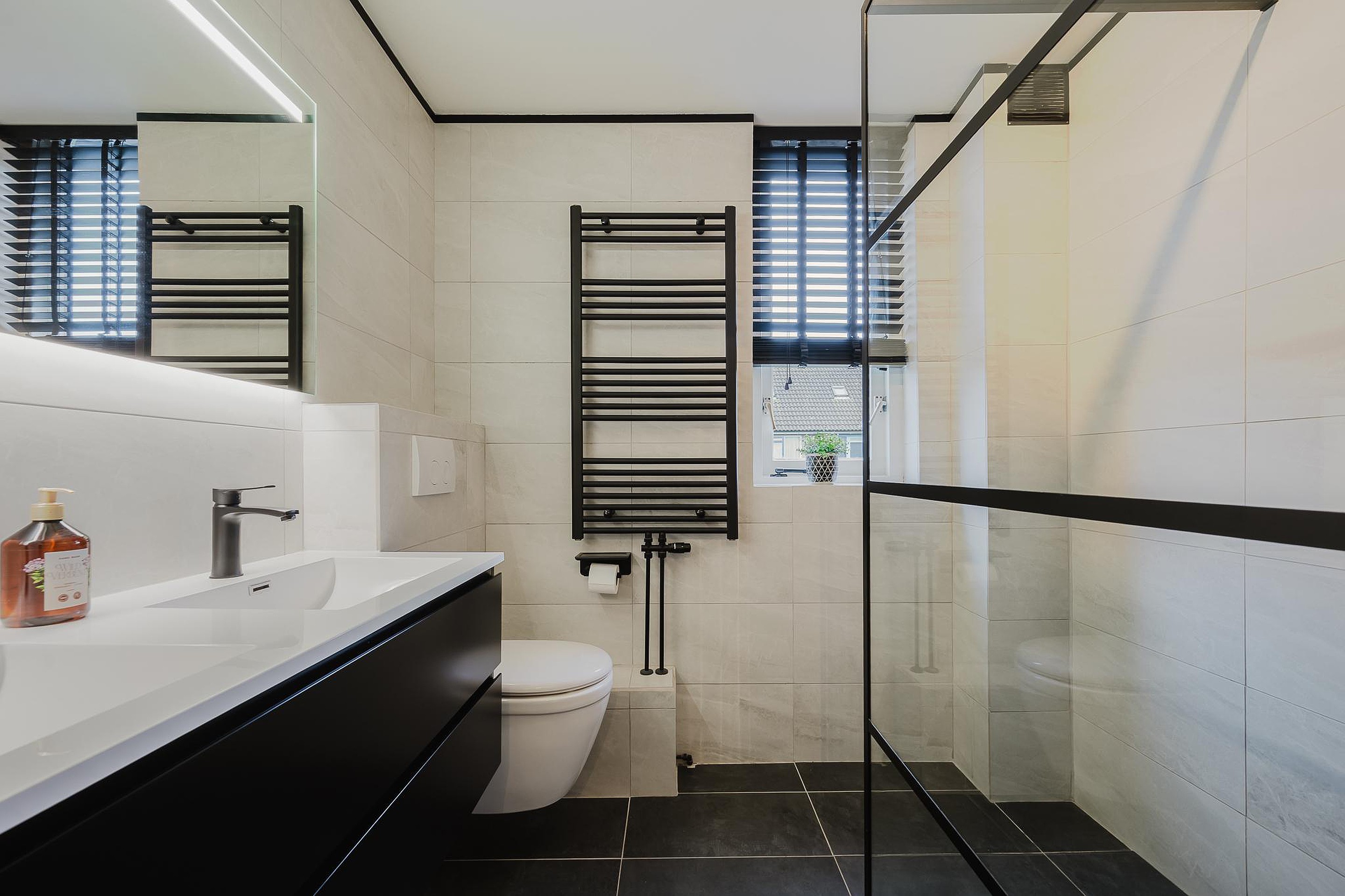 De badkamer is in 2020 volledig vernieuwd en afgewerkt in een moderne stijl.