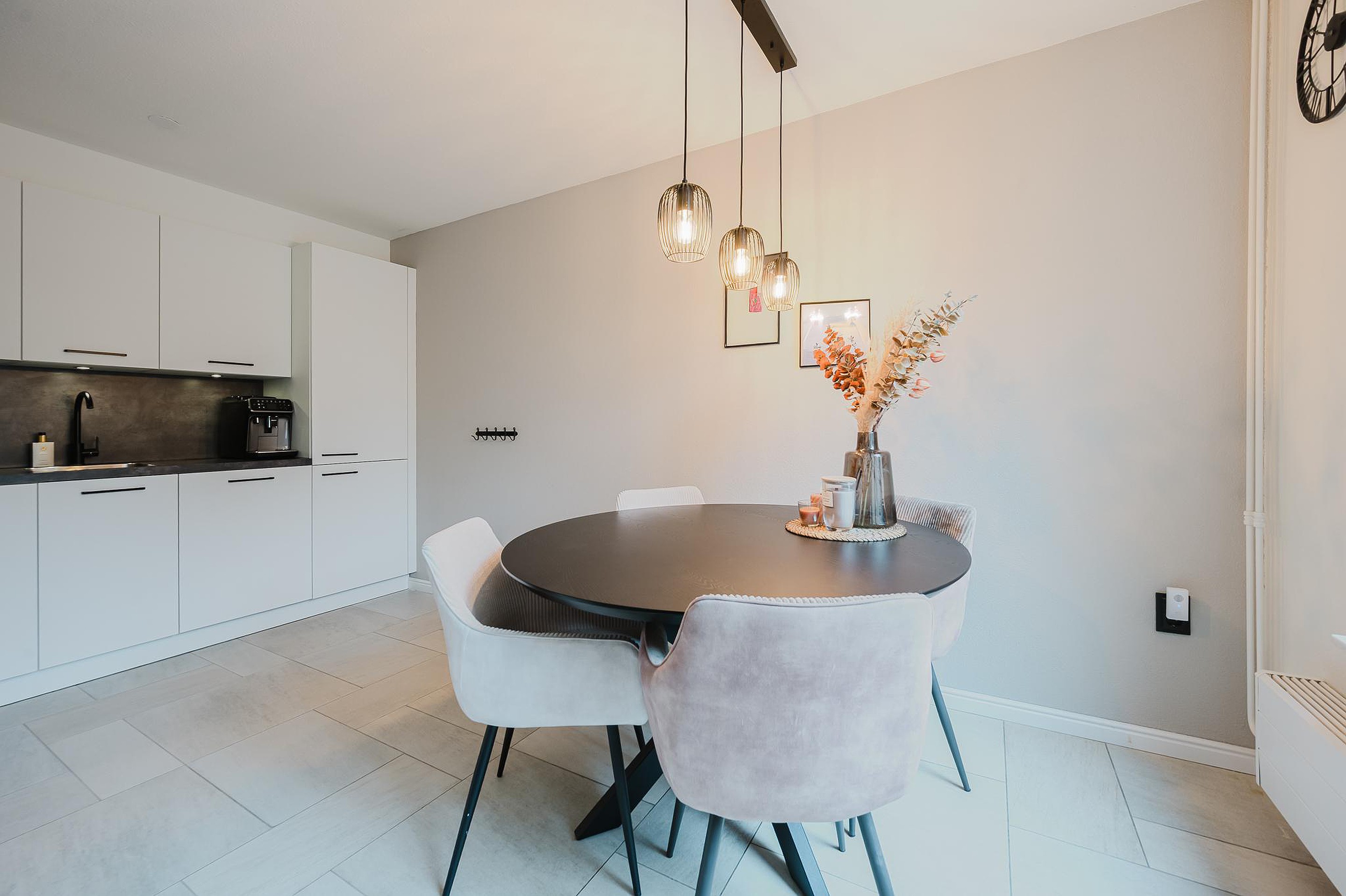 Via de woonkamer bereik je de aparte eethoek en de keuken.
