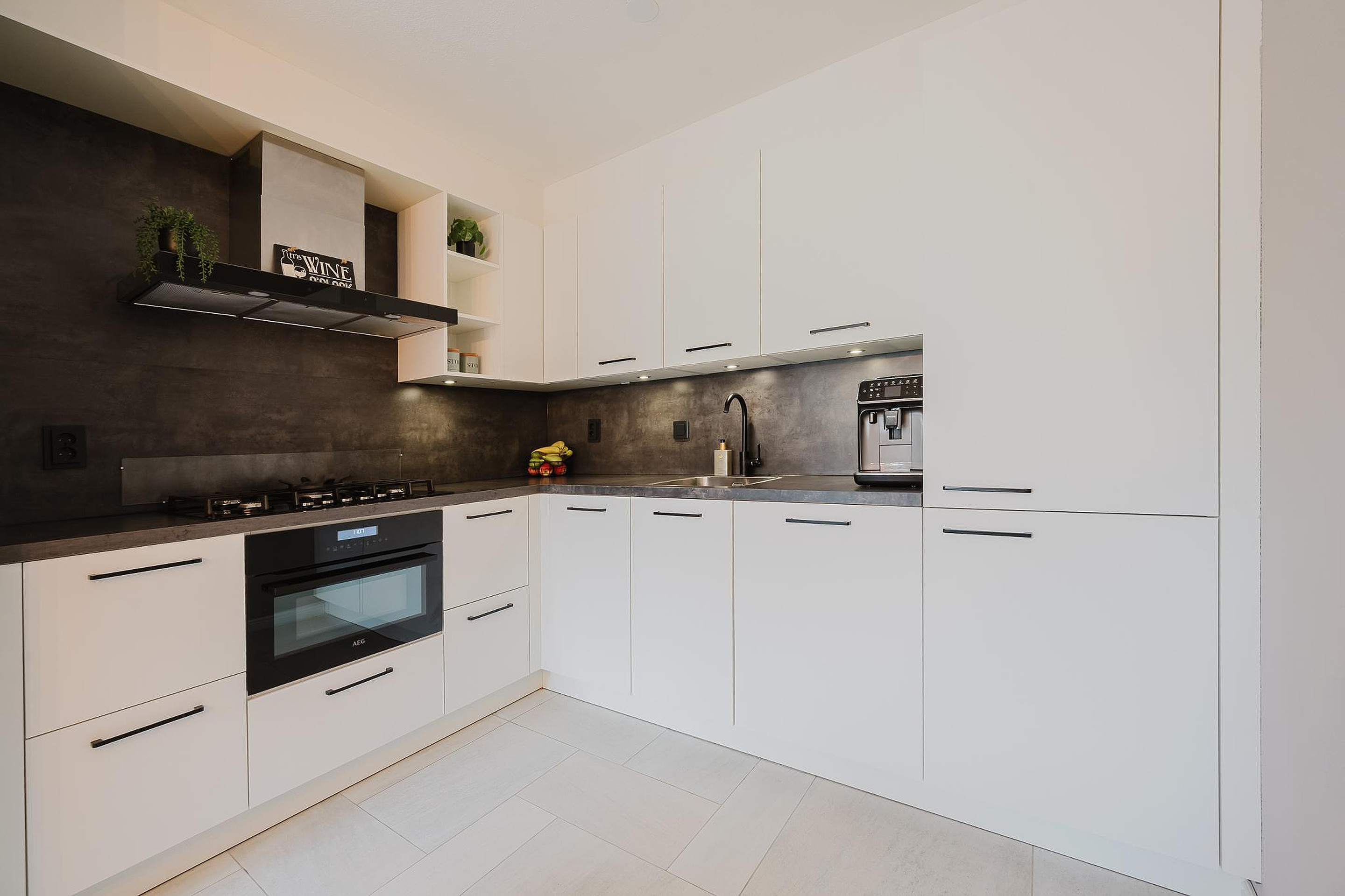 De volledige begane grond is voorzien van een plavuizen vloer met vloerverwarming en heeft een strak gestuukte wandafwerking.