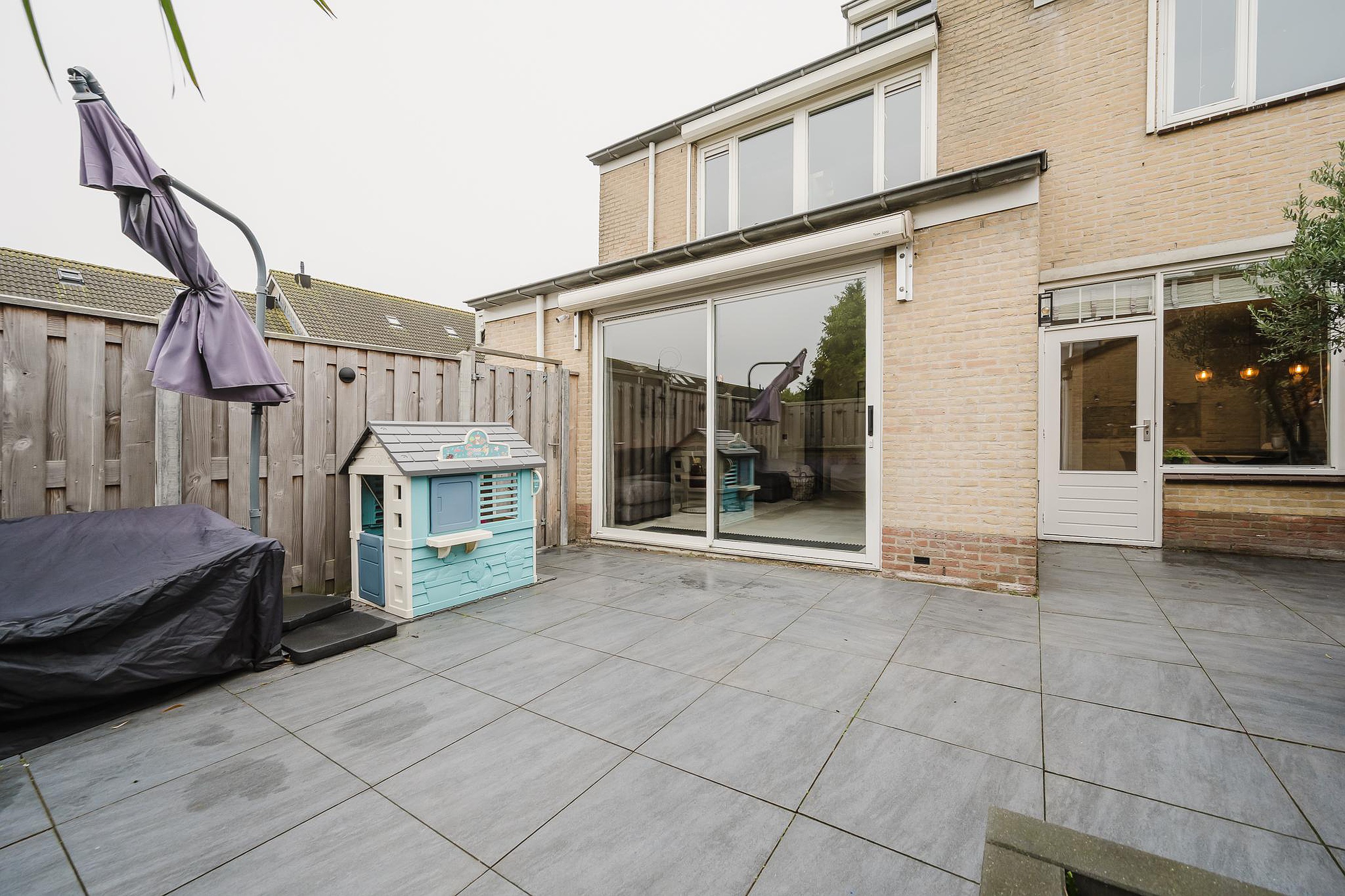 Via de tuindeur in de keuken bereik je de fraai aangelegde achtertuin gelegen op het zuiden. De strak aangelegde achtertuin, in 2020 volledig vernieuwd, beschikt over een vrijstaande stenen berging en een praktische achterom.