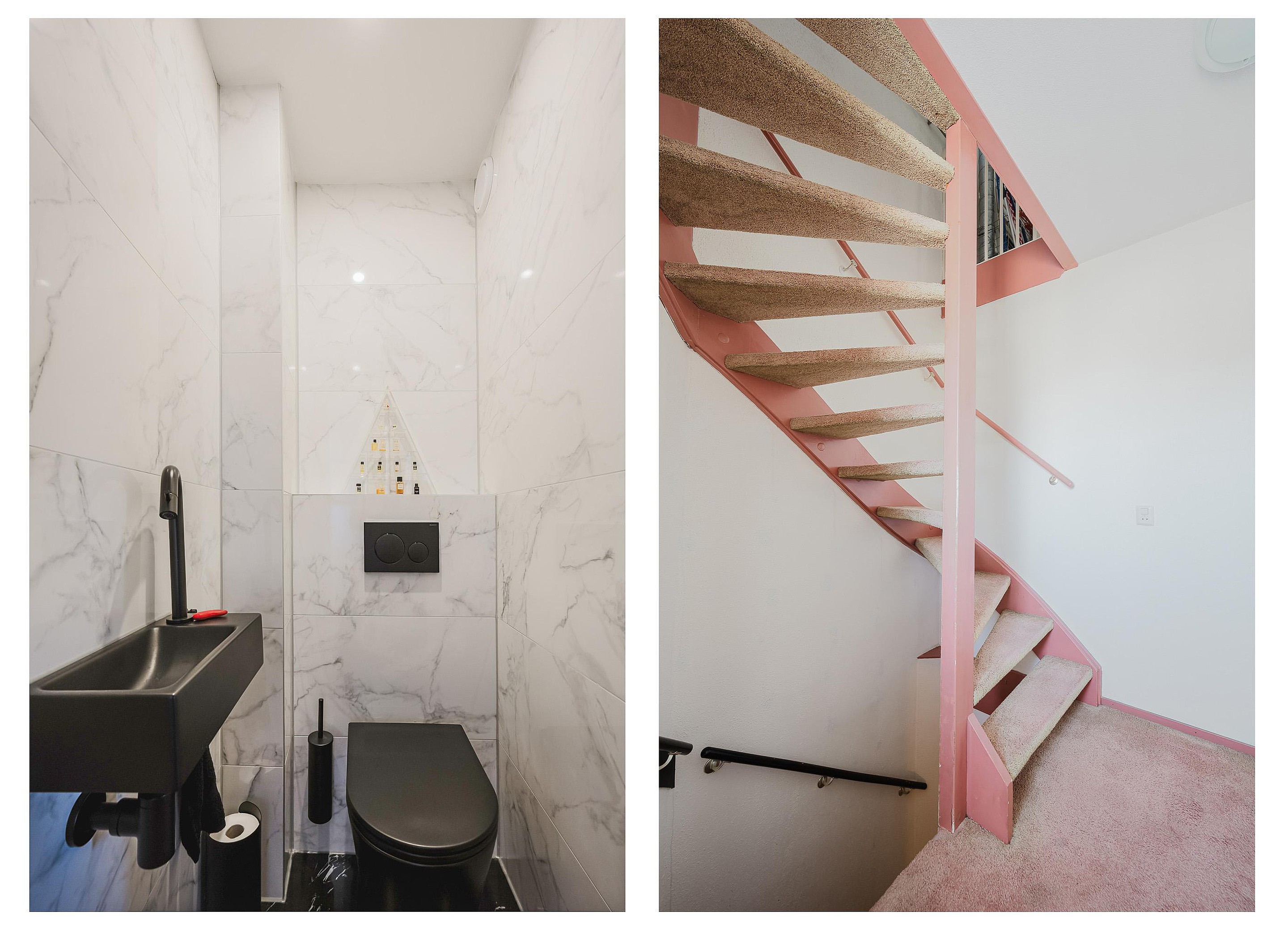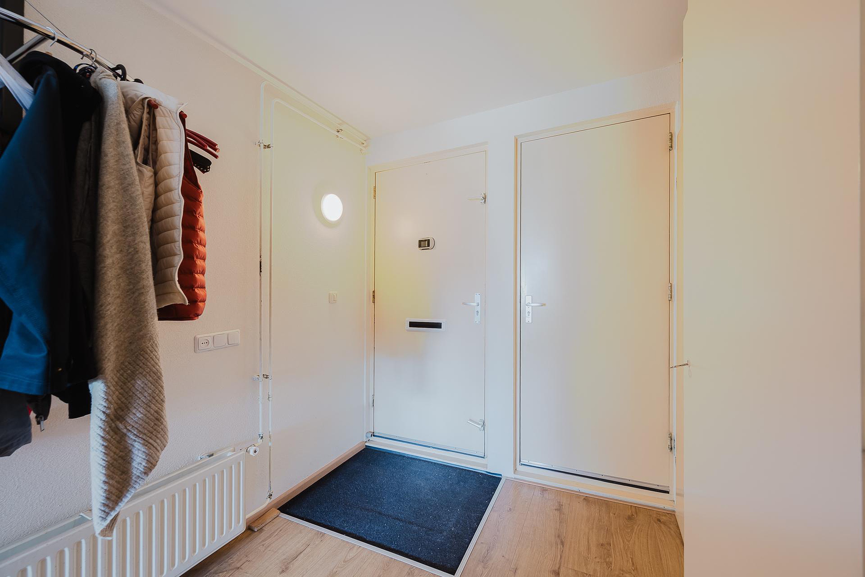 Verder biedt de hal toegang tot het toilet, de meterkast, de trapopgang en de woonkamer.